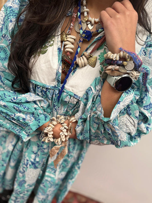 Blockprints jurk Flowers green