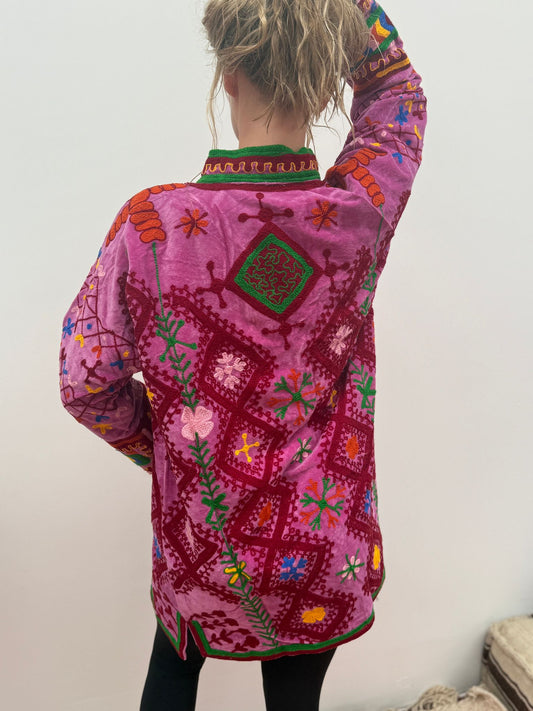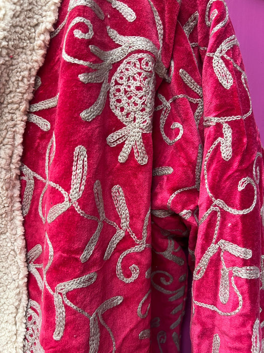 Long velvet embroidery jas