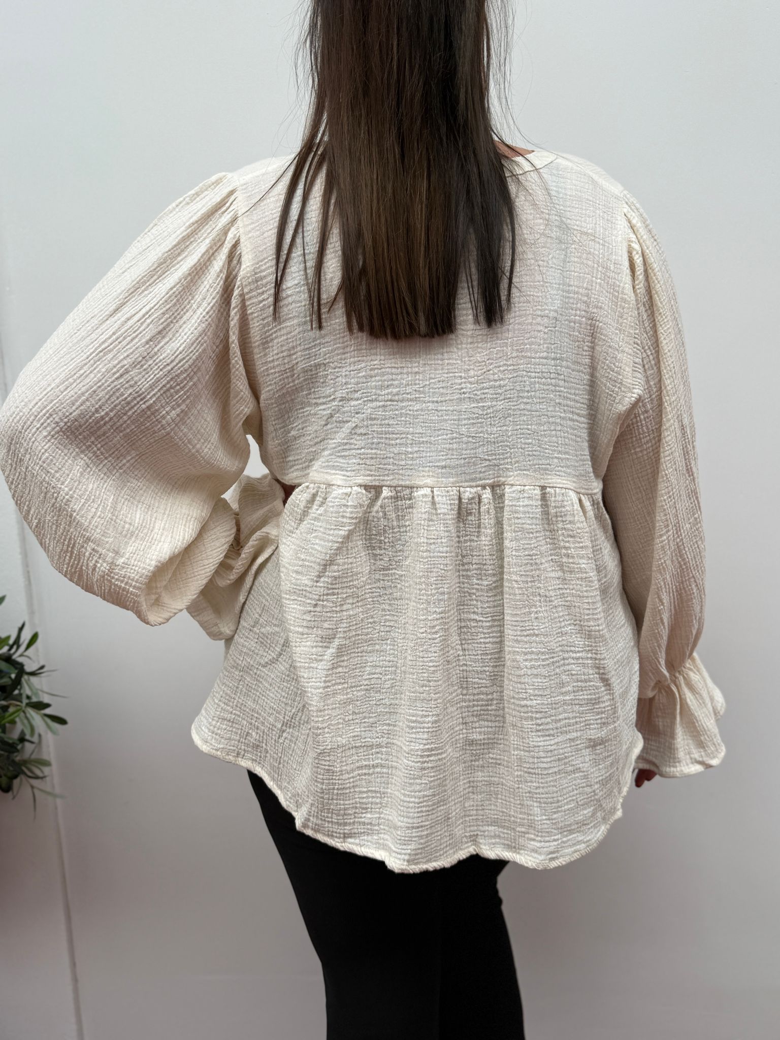 Deze blouse is gemaakt van gerecycled katoen en afgewerkt met de mooiste garen. Alles is zorgvuldig geselecteerd met respect voor mens en planeet.