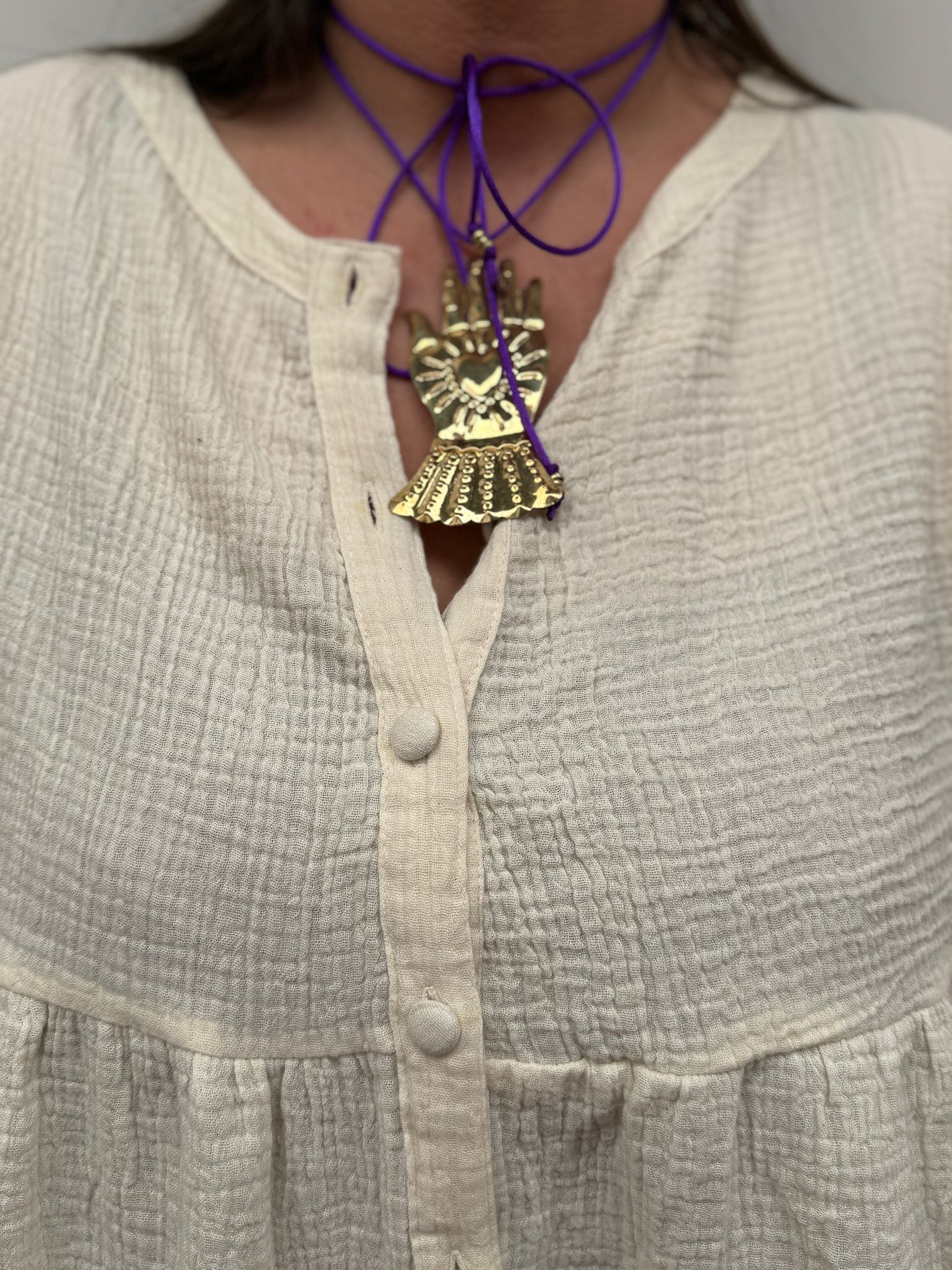 Blouse Mae is met de hand gemaakt in India, speciaal ontworpen door ToutVintage en geschikt voor wie waarde hecht aan vakmanschap, duurzaamheid en karakter. Elk stuk is uniek en komt uit een gelimiteerde oplage van slechts 1000 exemplaren.