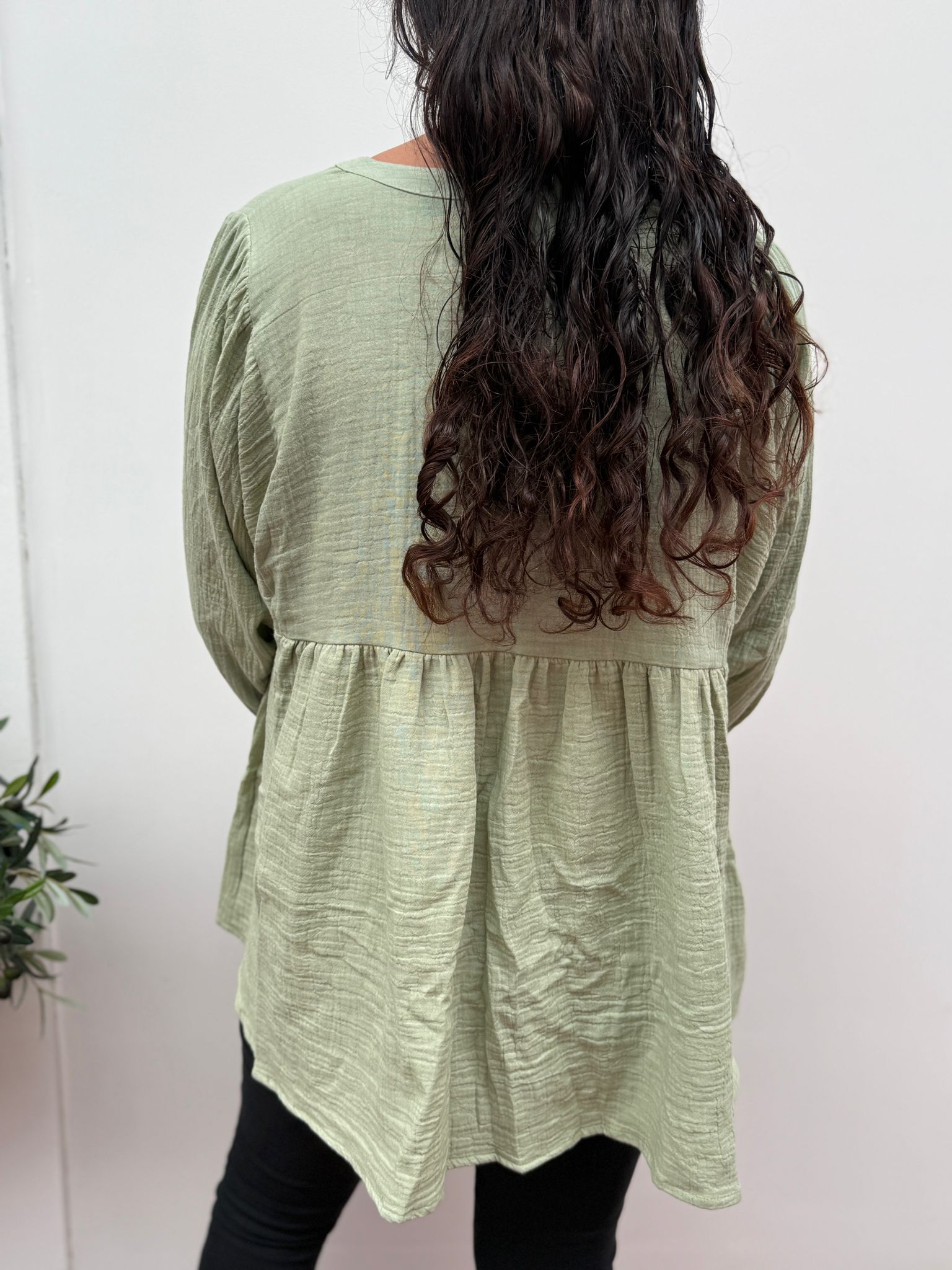 Deze blouse is gemaakt van gerecycled katoen en afgewerkt met de mooiste garen. Alles is zorgvuldig geselecteerd met respect voor mens en planeet.
