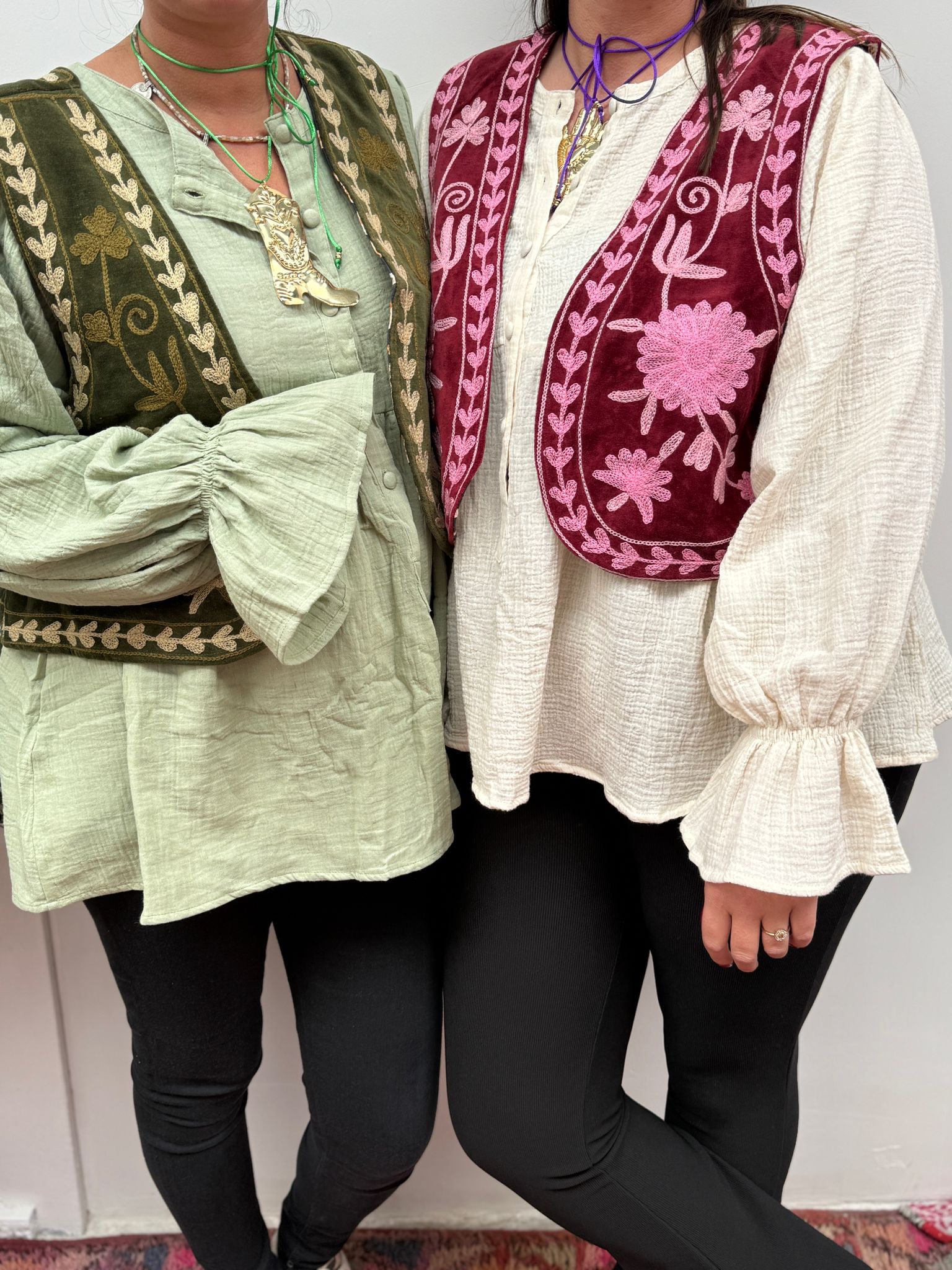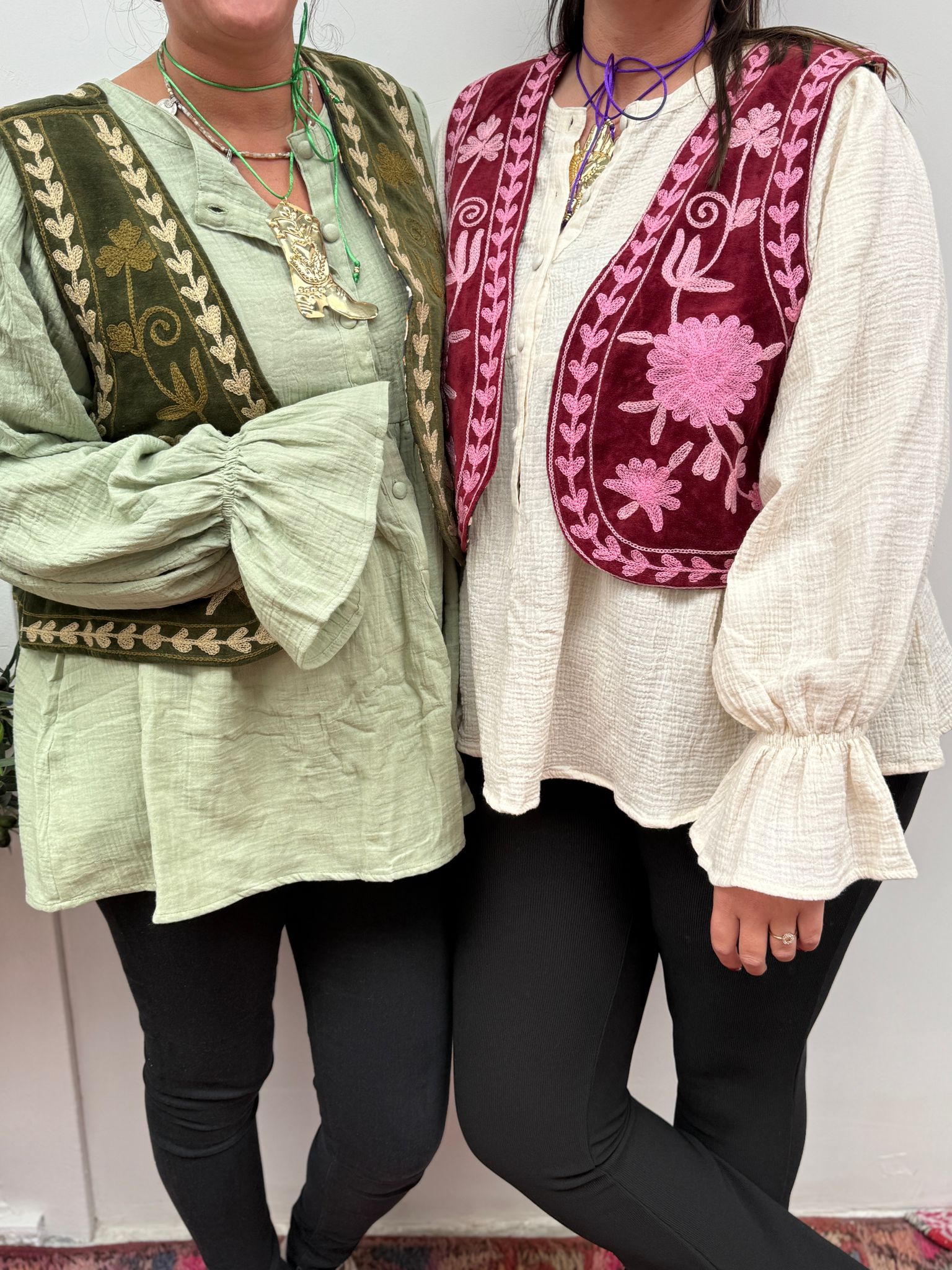 Blouse Mae is met de hand gemaakt in India, speciaal ontworpen door ToutVintage en geschikt voor wie waarde hecht aan vakmanschap, duurzaamheid en karakter. Elk stuk is uniek en komt uit een gelimiteerde oplage van slechts 1000 exemplaren.