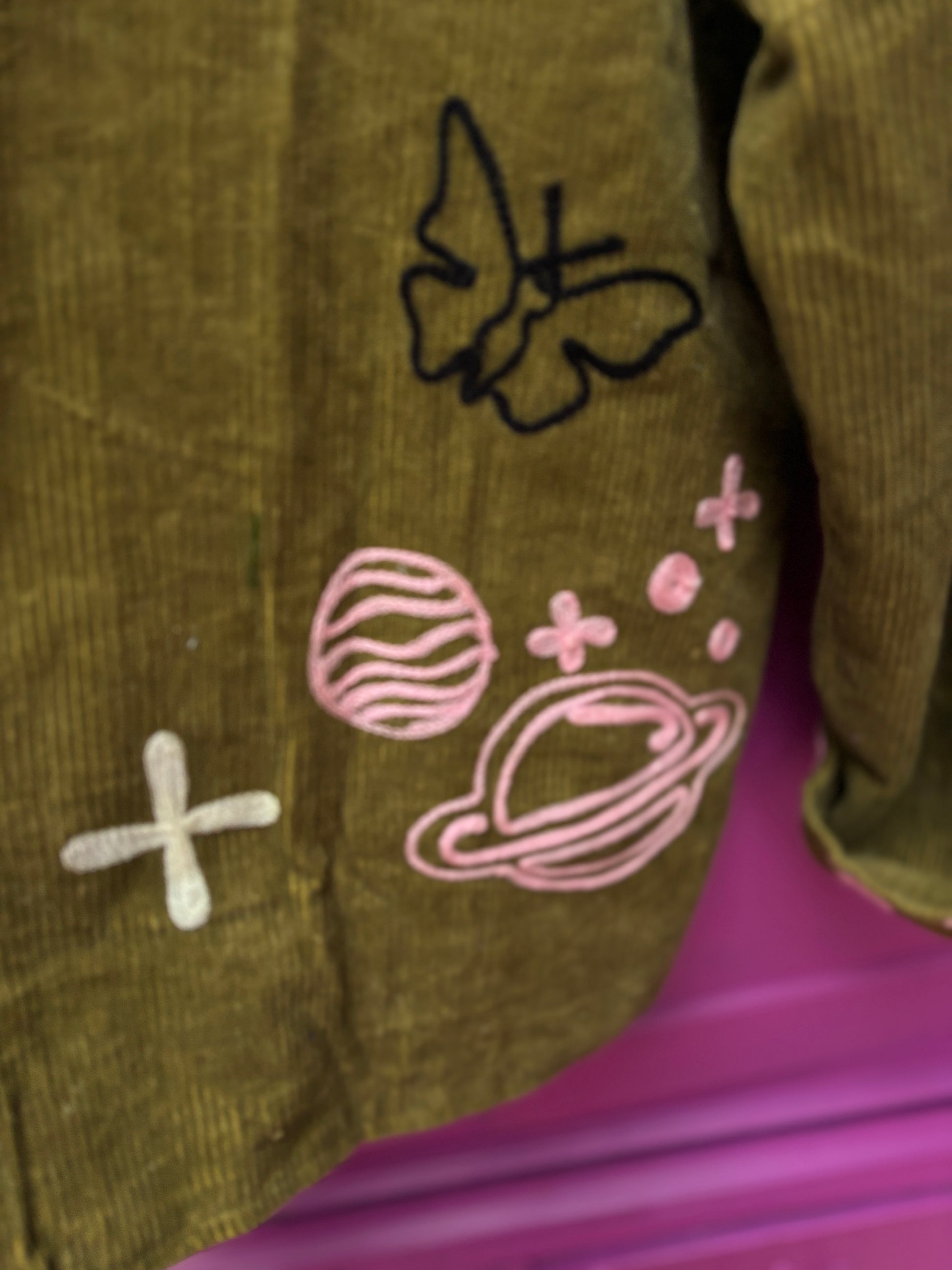 Dit jacket is gemaakt van corduroy stof en geborduurd met de mooiste garen. Alles is zorgvuldig geselecteerd met respect voor mens en planeet.