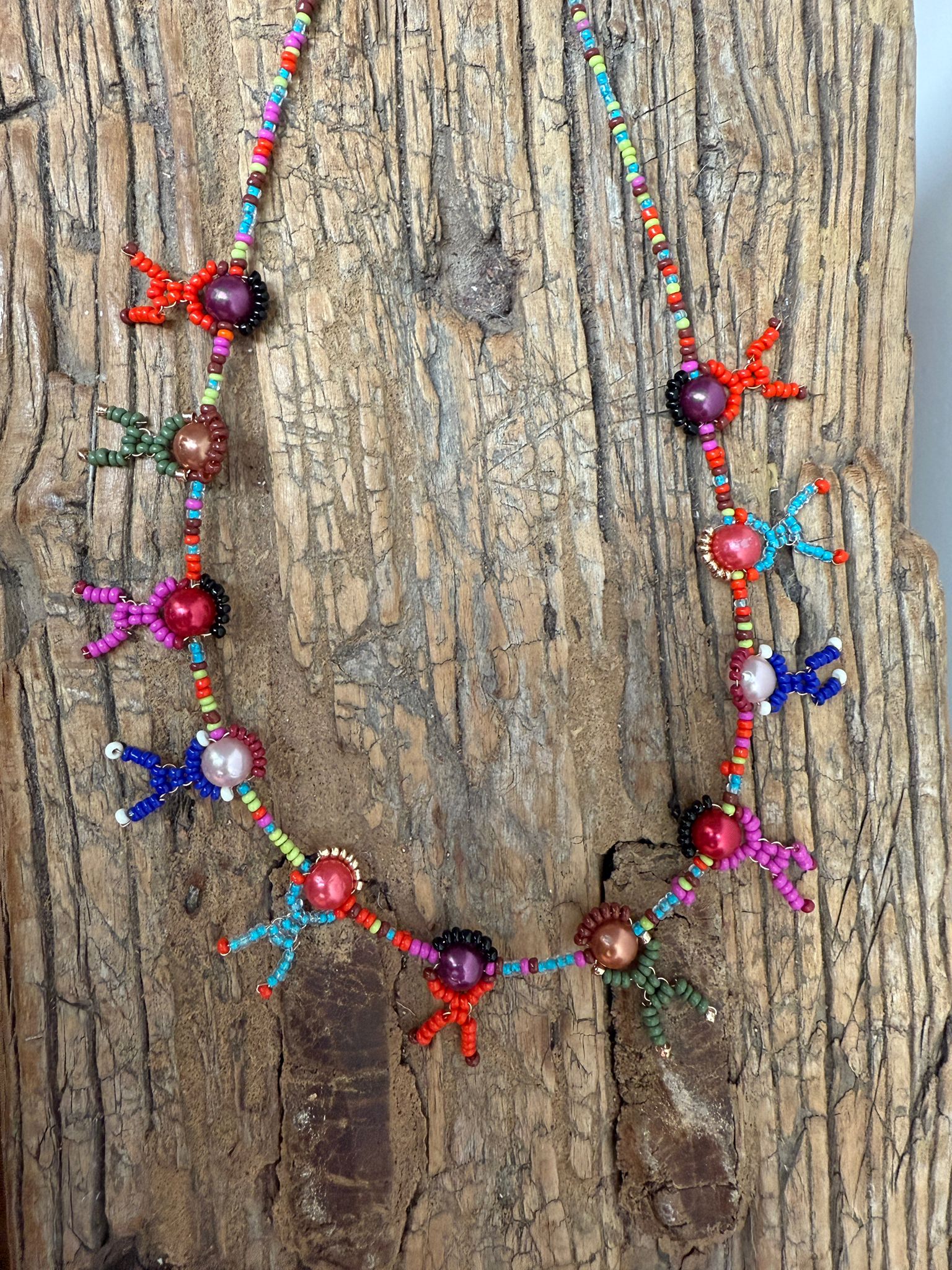 Door de levendige kleuren en speelse vorm is de ketting een echte eyecatcher, maar tegelijk draagt hij een zachte boodschap van liefde, gelijkwaardigheid en verbondenheid. Perfect voor wie niet alleen een accessoire wil dragen, maar ook een verhaal en een waarde.
