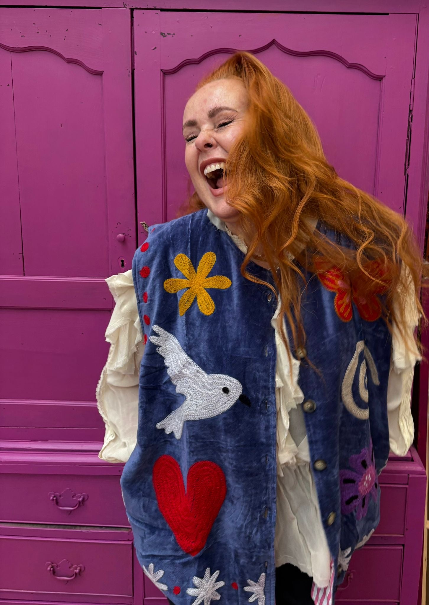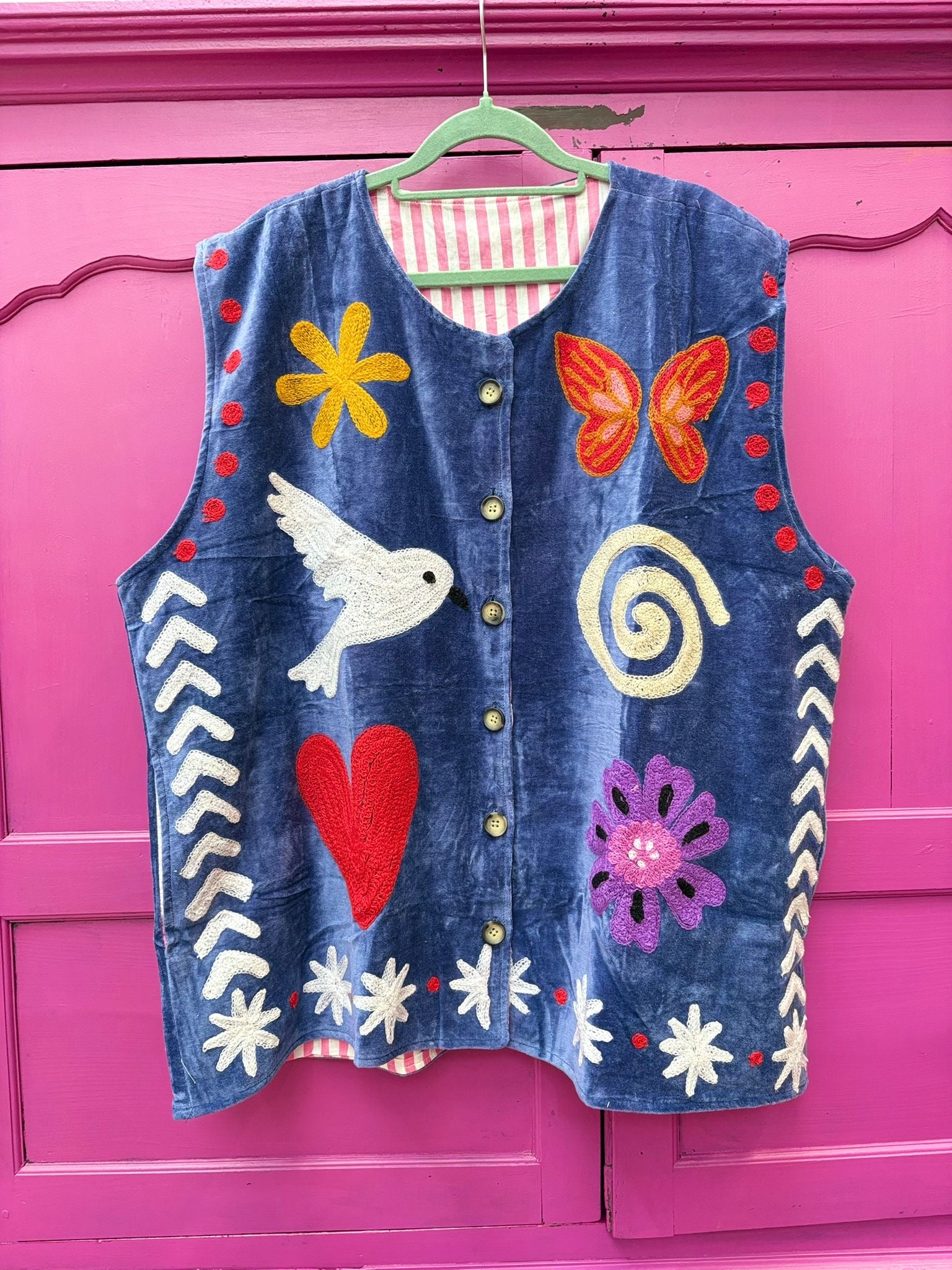 Dit jacket is gemaakt van velvet stof en geborduurd met de mooiste garen. Alles is zorgvuldig geselecteerd met respect voor mens en planeet.