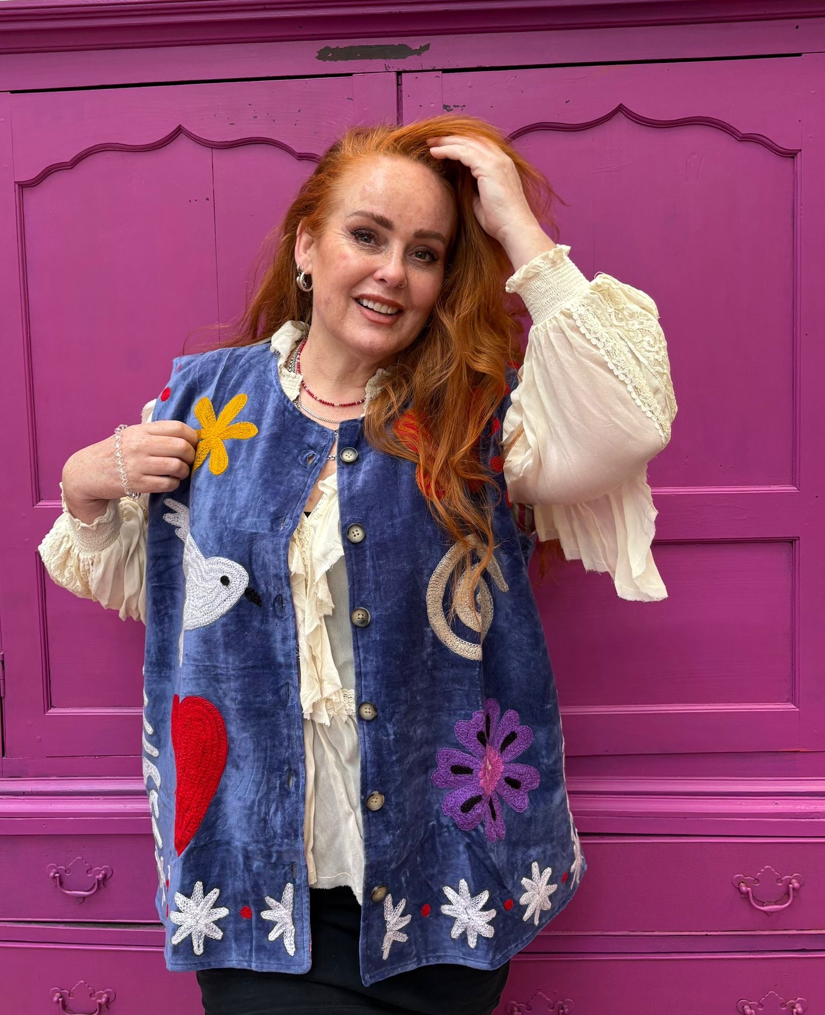 Velvet vests Tamar is met de hand gemaakt in India, speciaal ontworpen door ToutVintage en geschikt voor wie waarde hecht aan vakmanschap, duurzaamheid en karakter. Elk stuk is uniek en komt uit een gelimiteerde oplage van slechts 100 exemplaren.