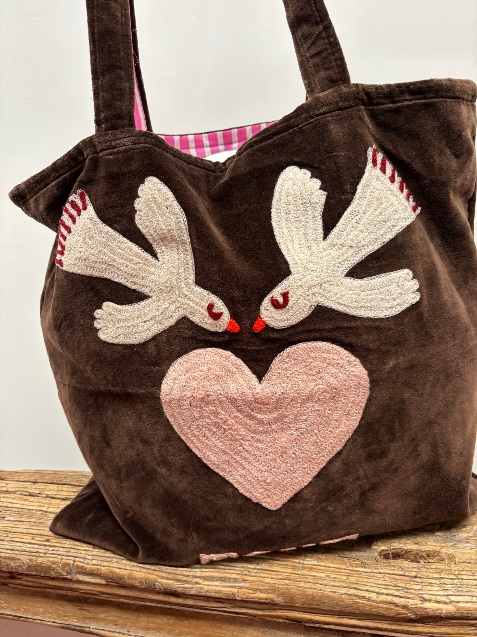 Set van 4 velvet embroidery "BIRD tout" tassen