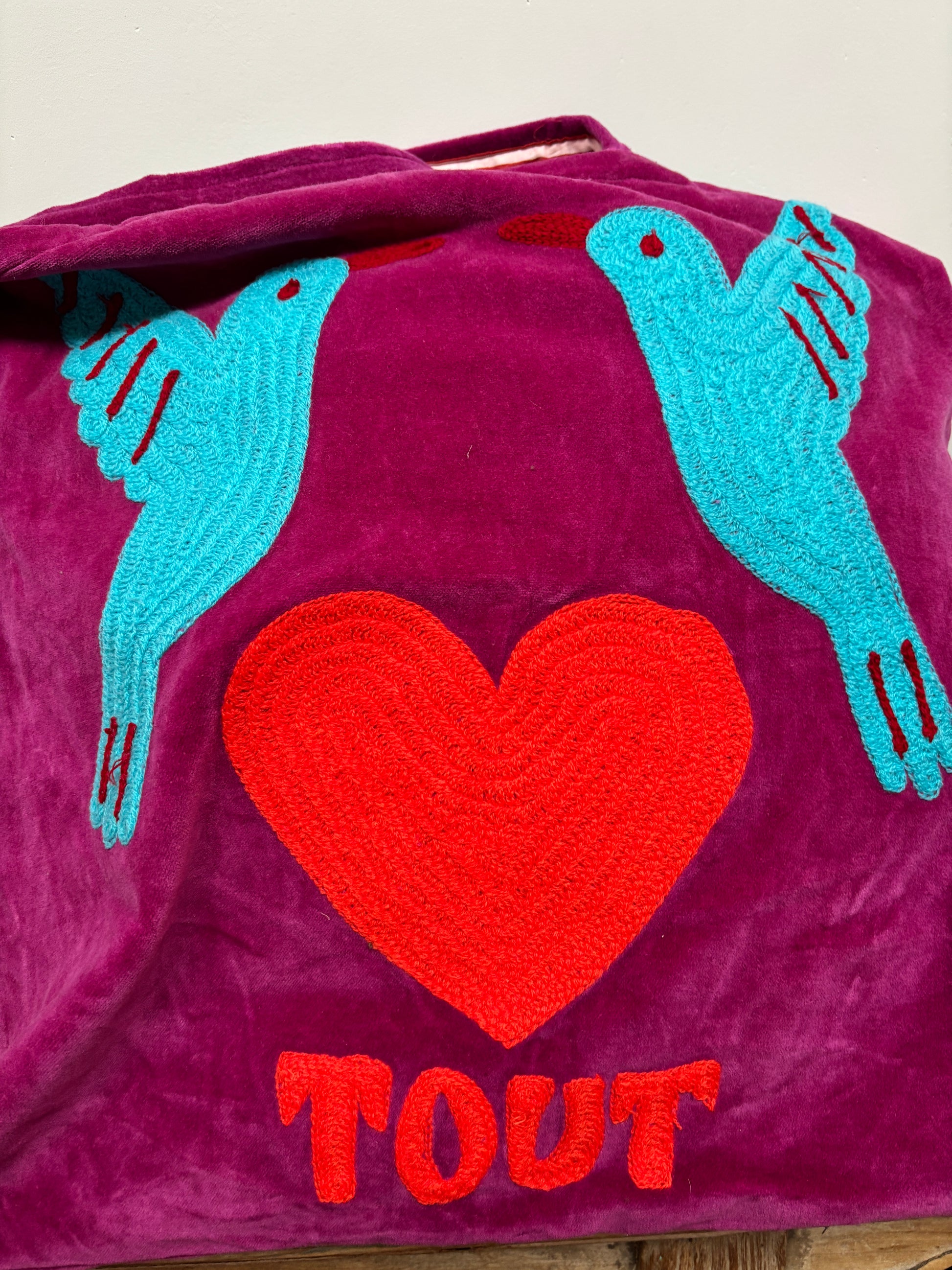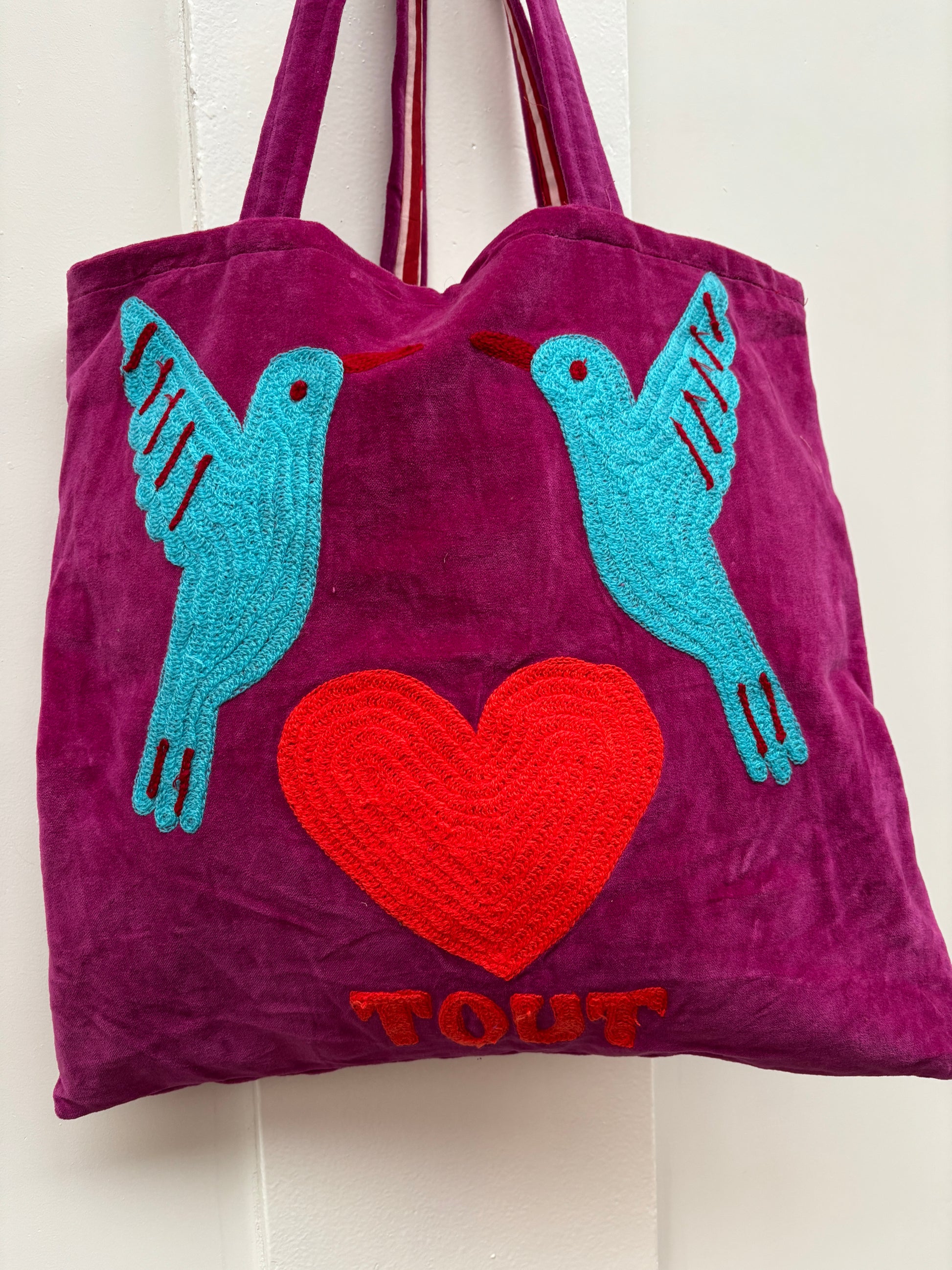 Set van 4 velvet embroidery "BIRD tout" tassen