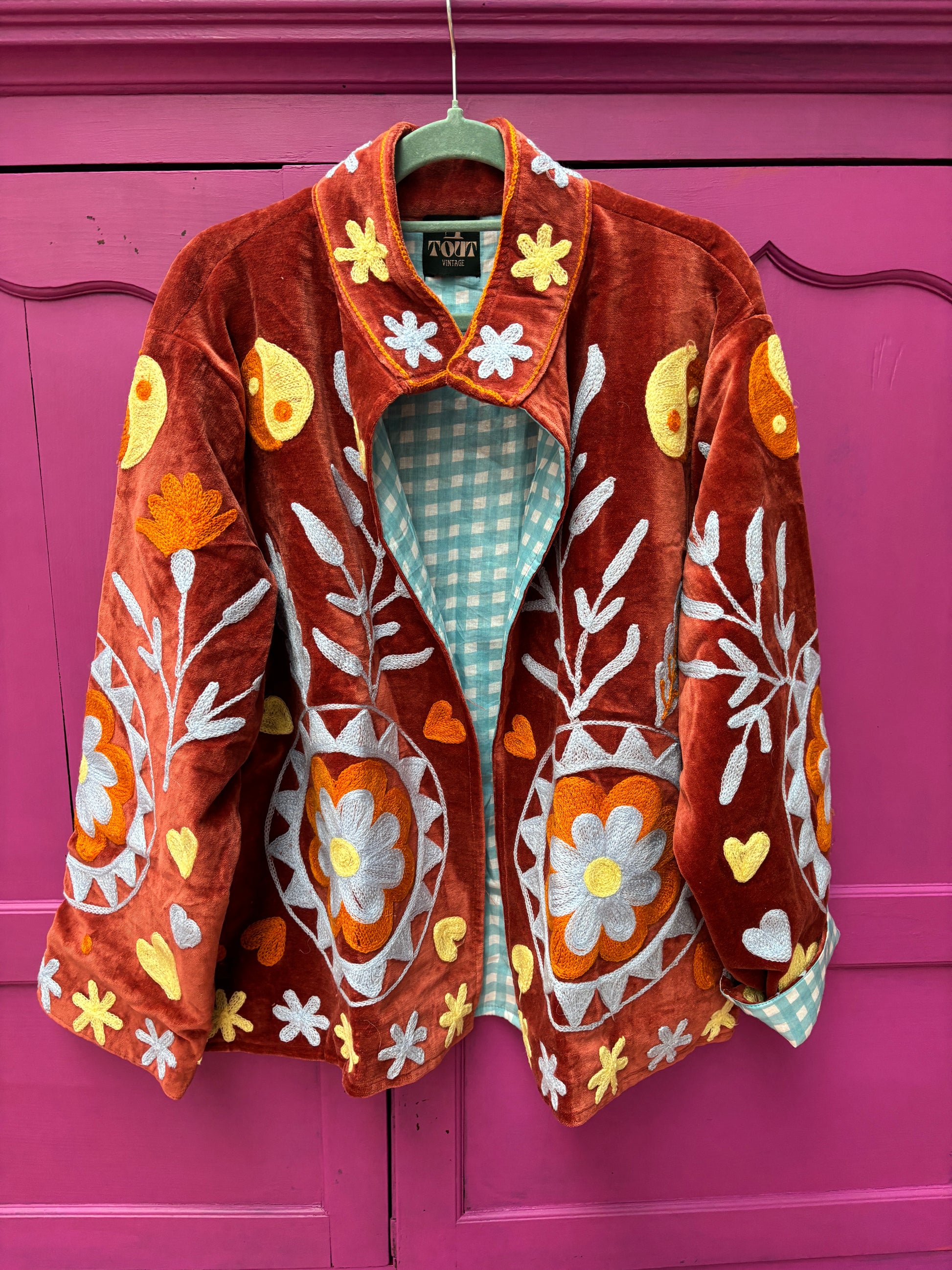 Dit jacket is gemaakt van velvet stof en geborduurd met de mooiste garen. Alles is zorgvuldig geselecteerd met respect voor mens en planeet.