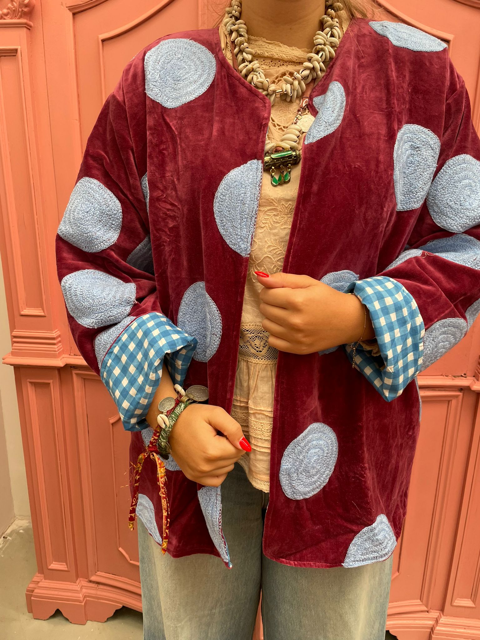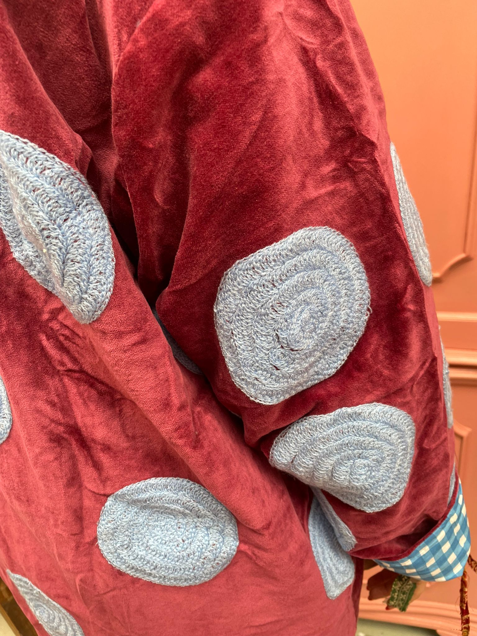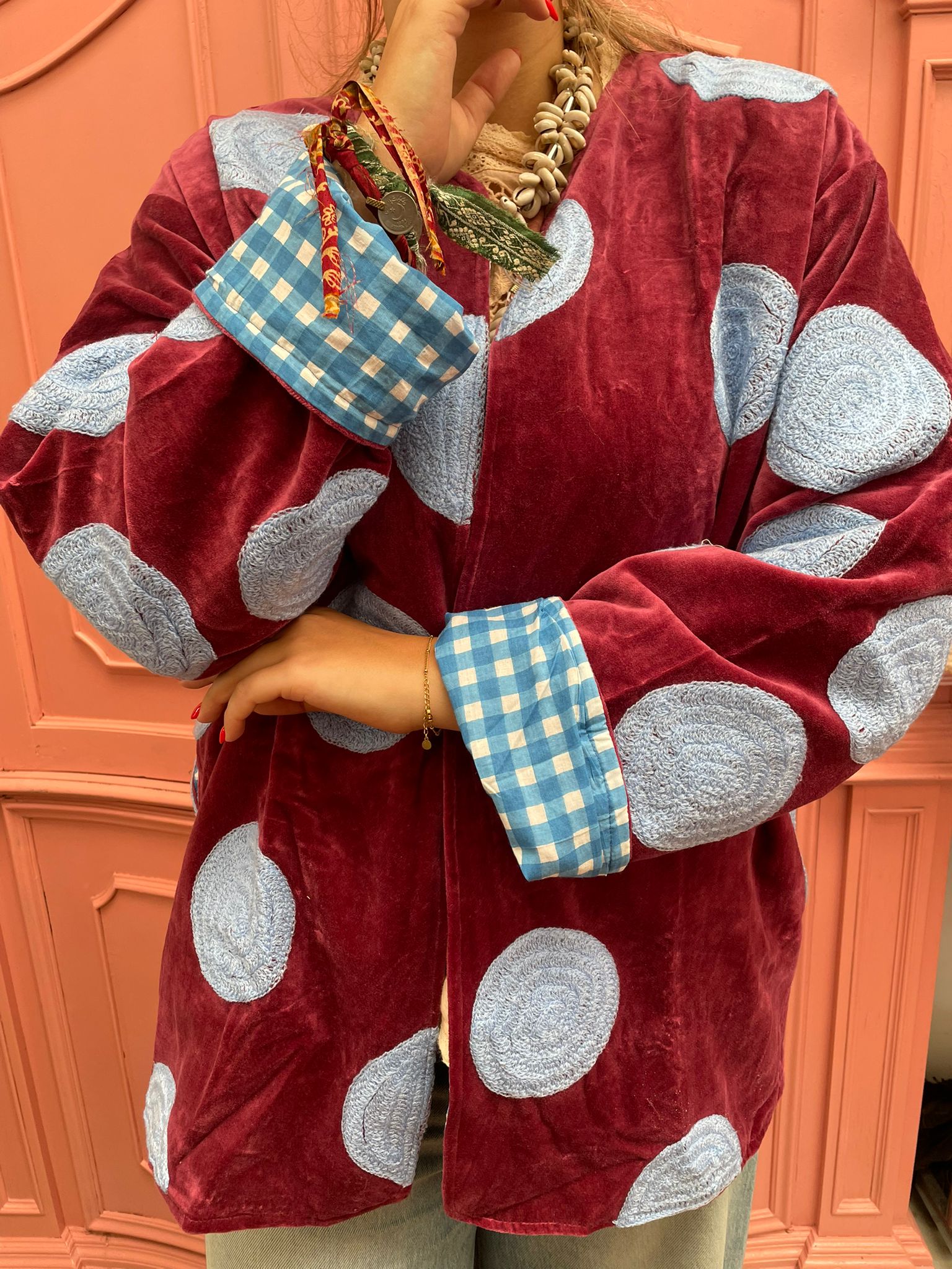Ieder Velvet embroidery jacket is one size en is passend tot maat 42 en wordt geleverd met een dustbag.