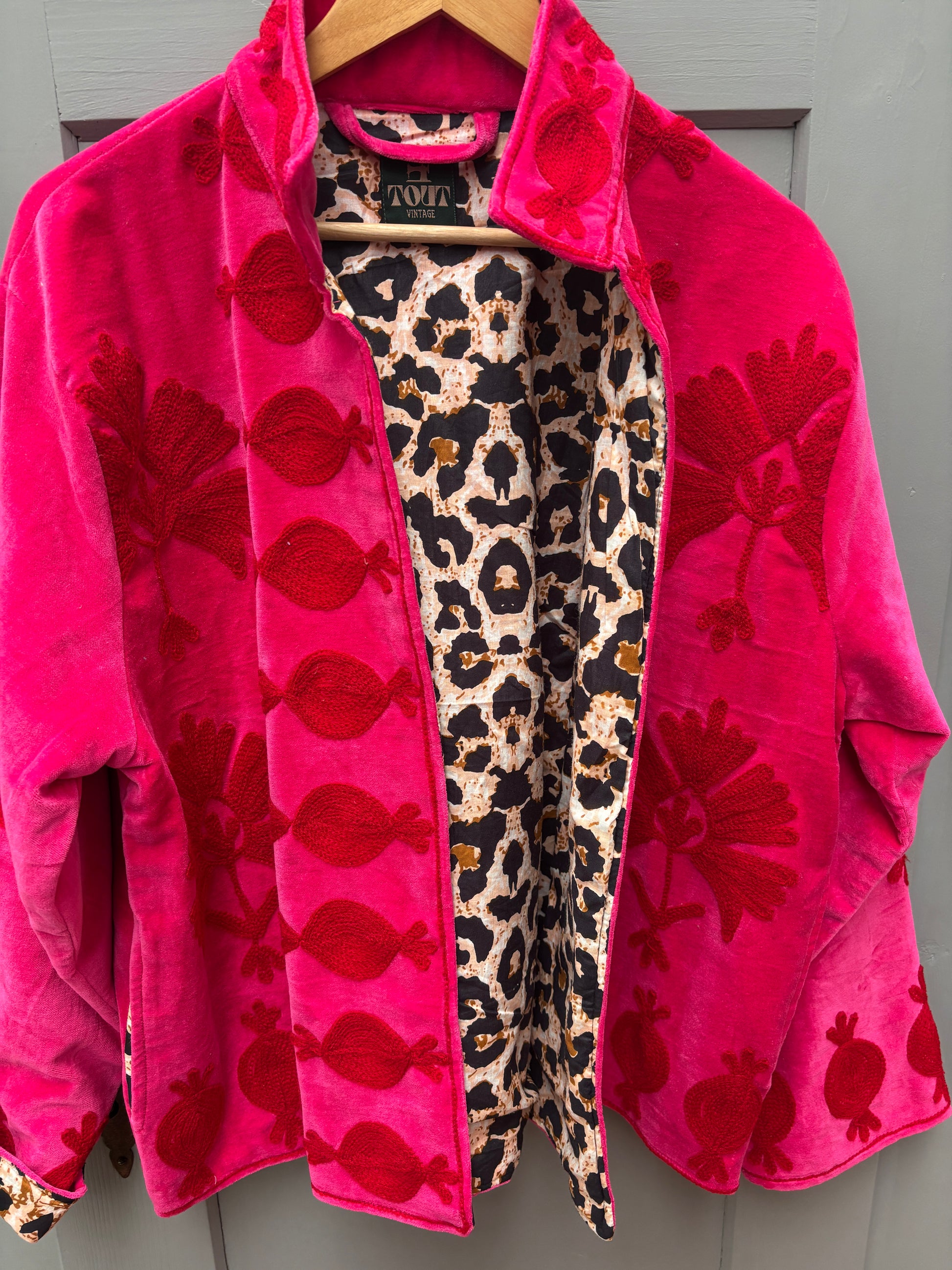 Velvet embroidery jacket Roze rood