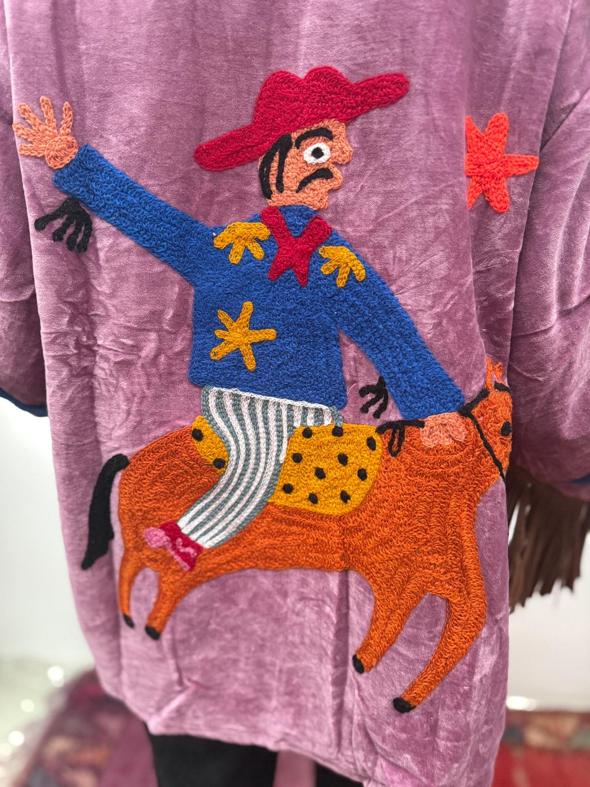 Velvet Fringe Jacket Cowboy is met de hand gemaakt in India, speciaal ontworpen door ToutVintage en geschikt voor wie waarde hecht aan vakmanschap, duurzaamheid en karakter. Elk stuk is uniek en komt uit een gelimiteerde oplage van slechts 100 exemplaren.