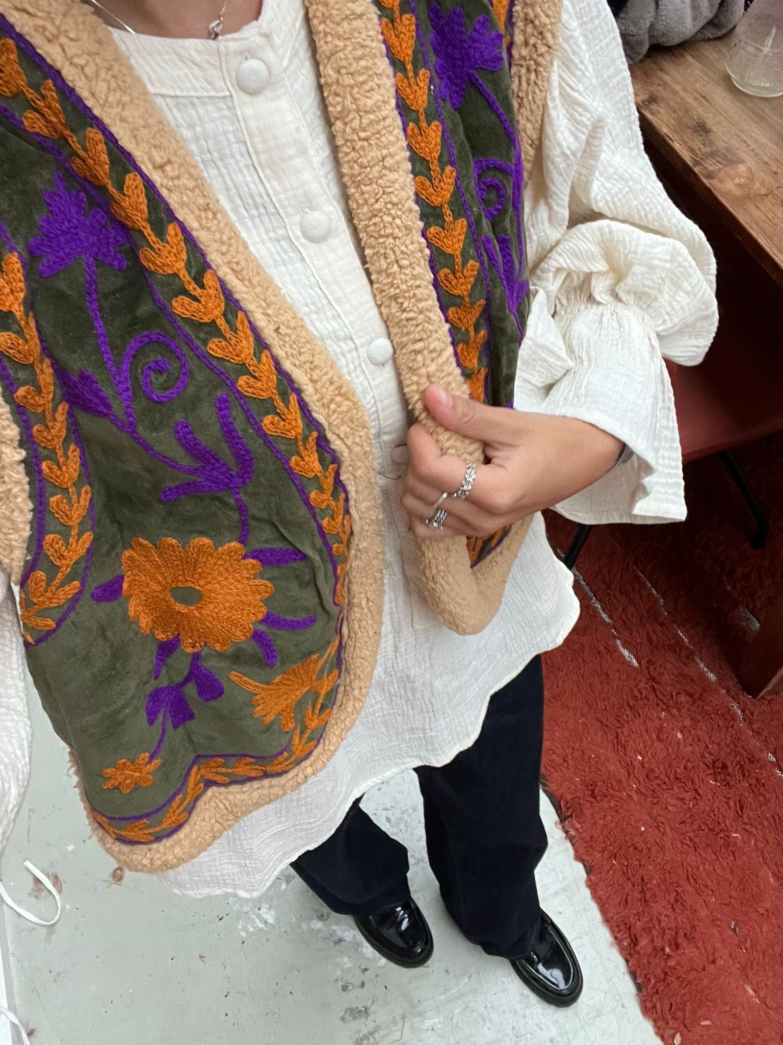 Velvet gilet is met de hand gemaakt in India, speciaal ontworpen door ToutVintage en geschikt voor wie waarde hecht aan vakmanschap, duurzaamheid en karakter. Elk stuk is uniek en komt uit een gelimiteerde oplage van slechts 100 exemplaren.