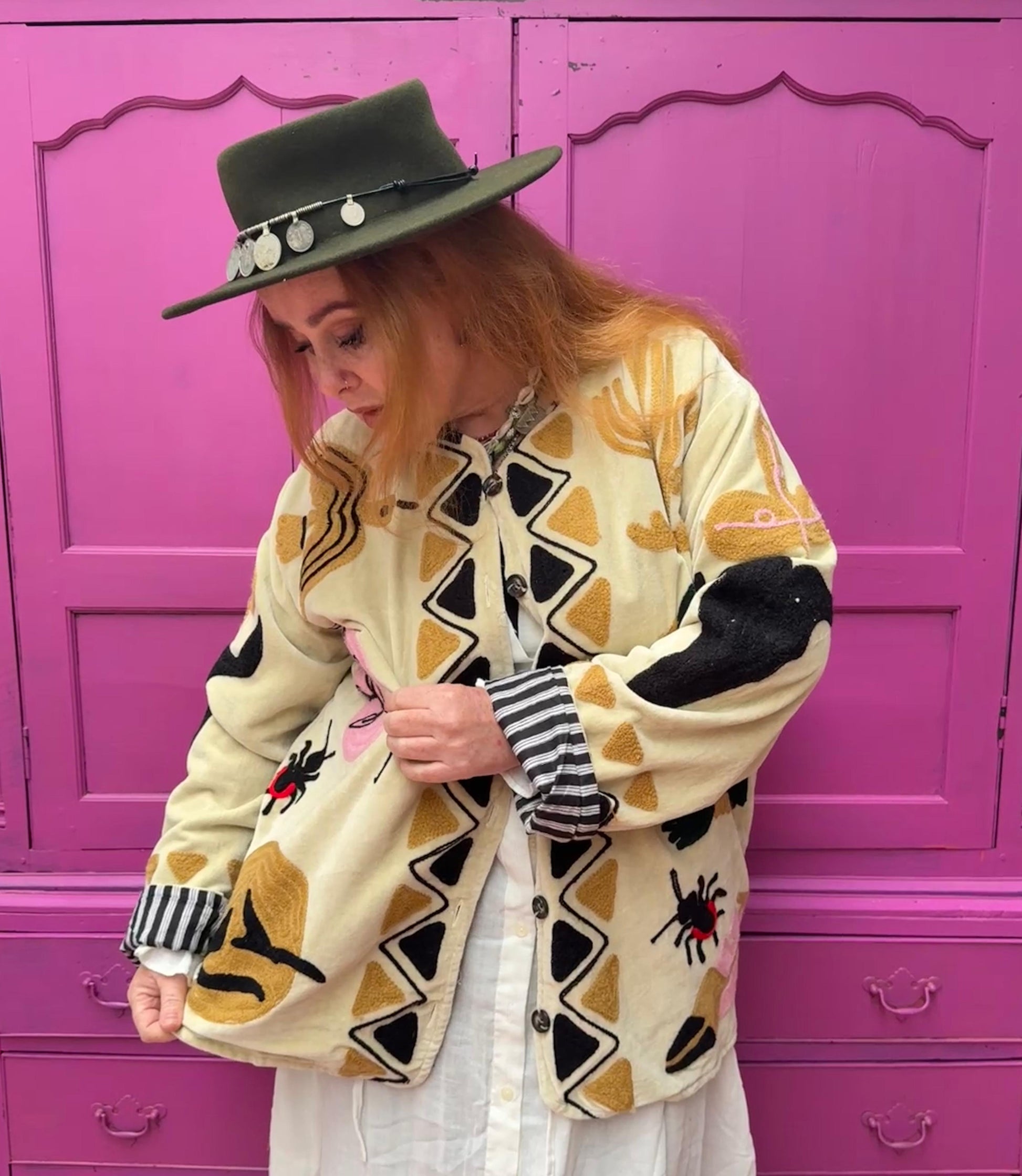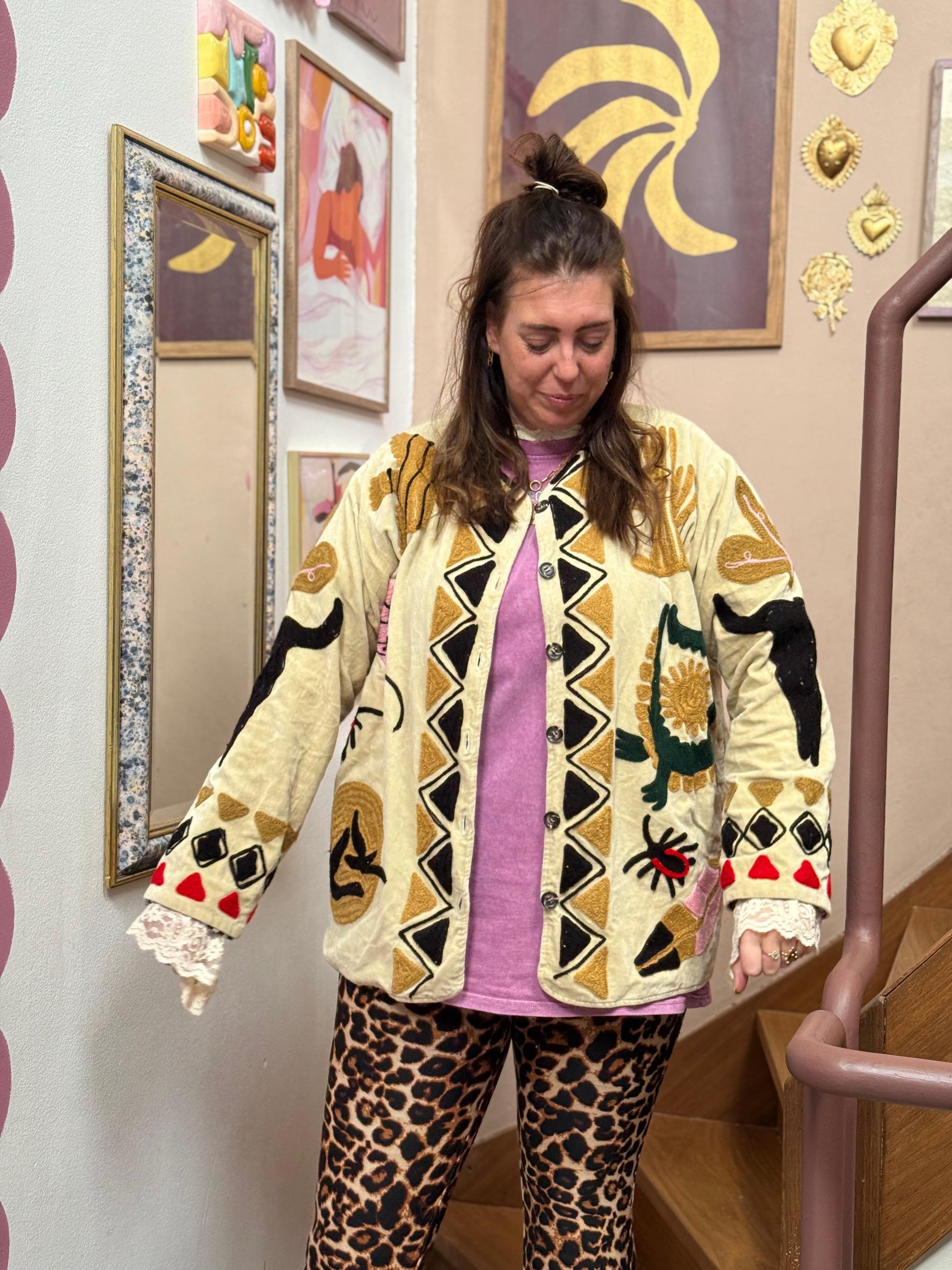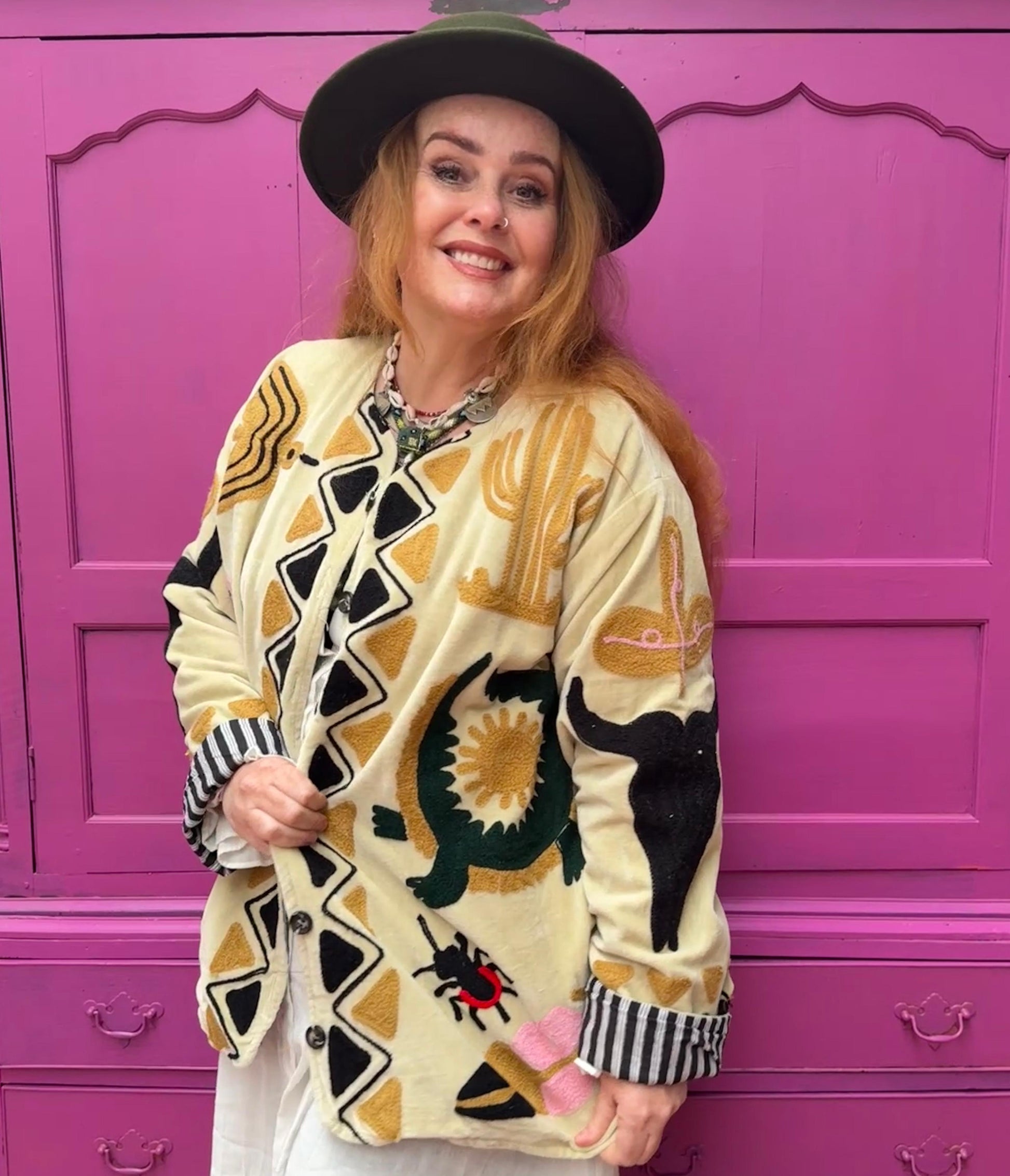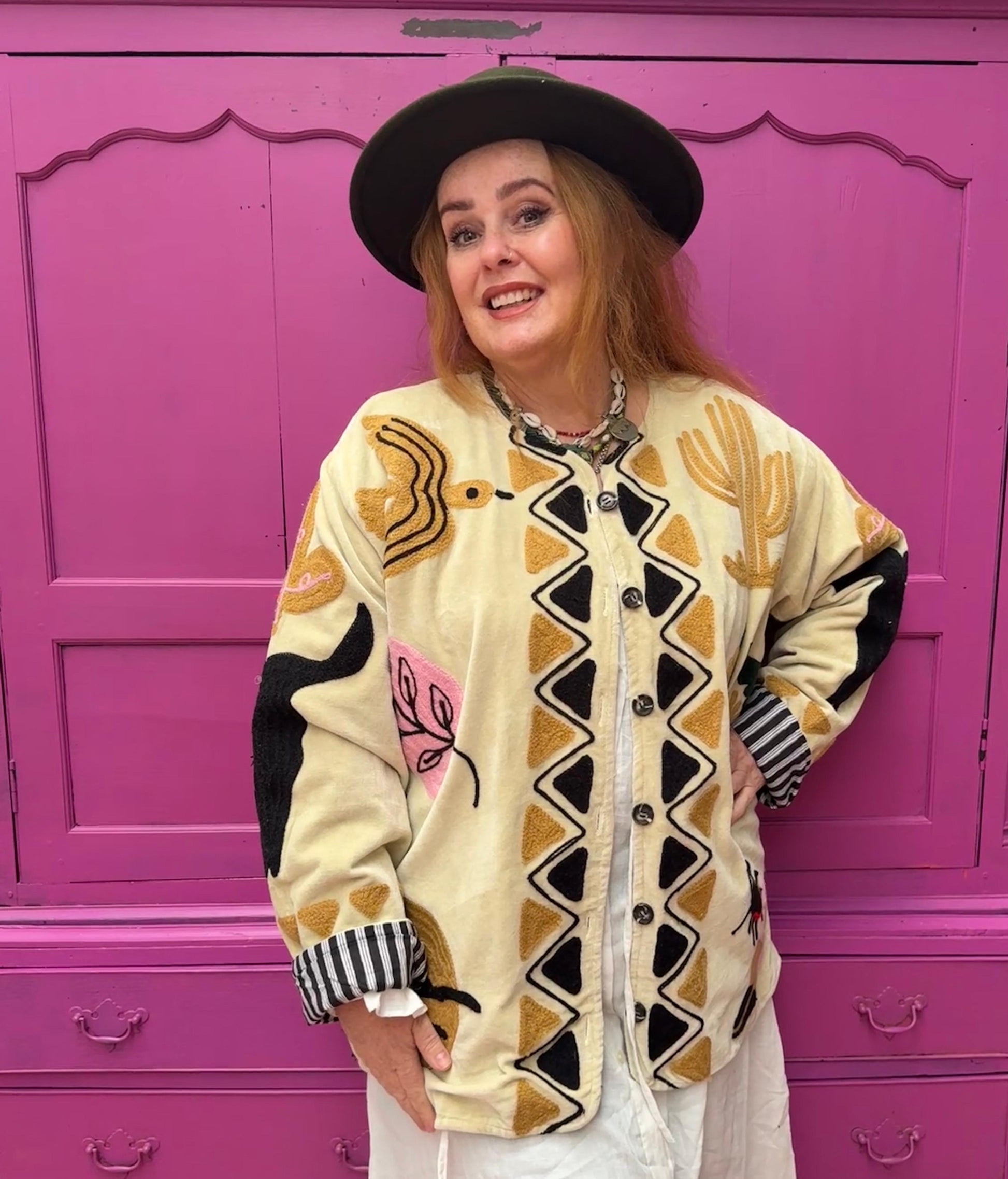 Dit jacket is gemaakt van velvet stof en geborduurd met de mooiste garen. Alles is zorgvuldig geselecteerd met respect voor mens en planeet.