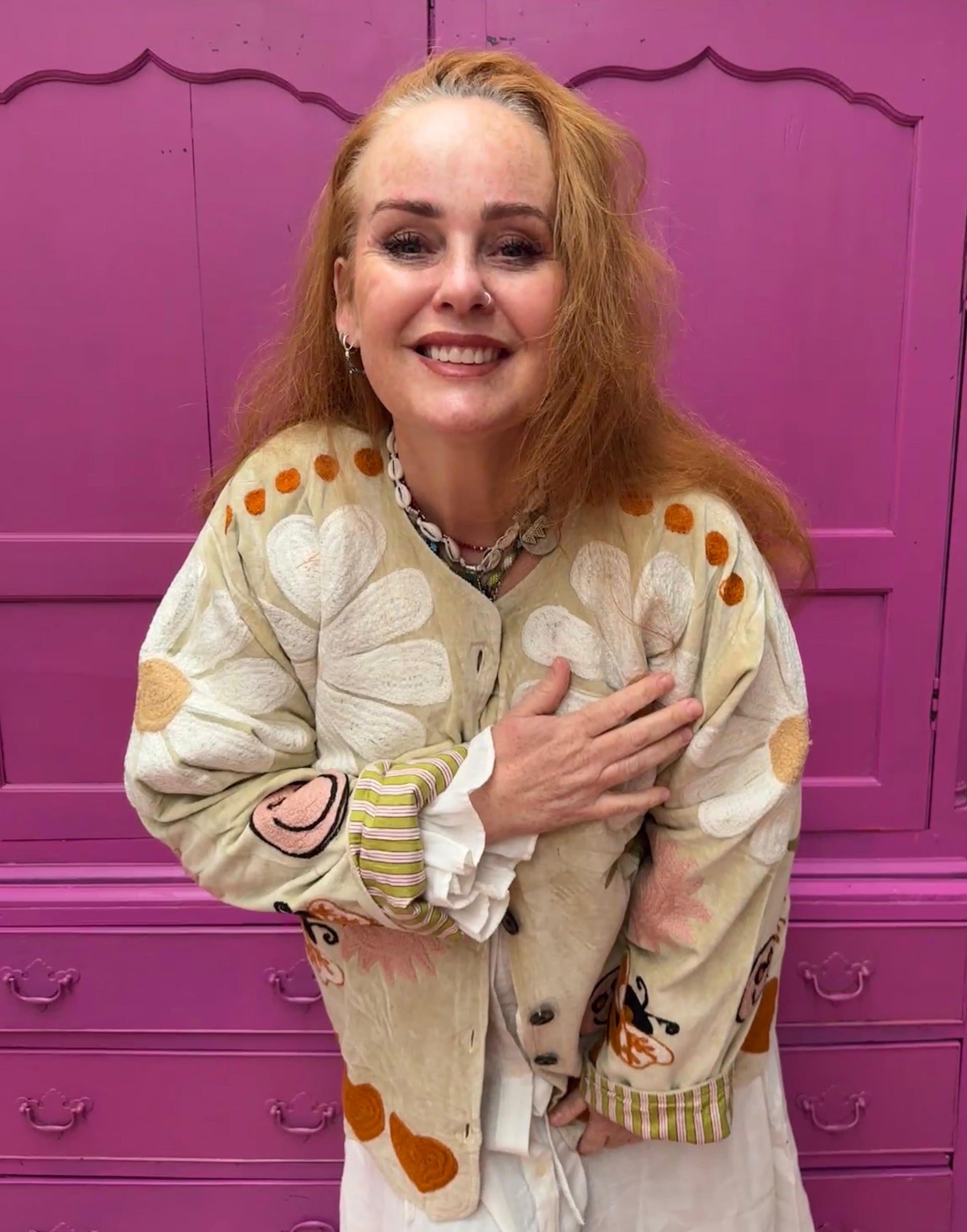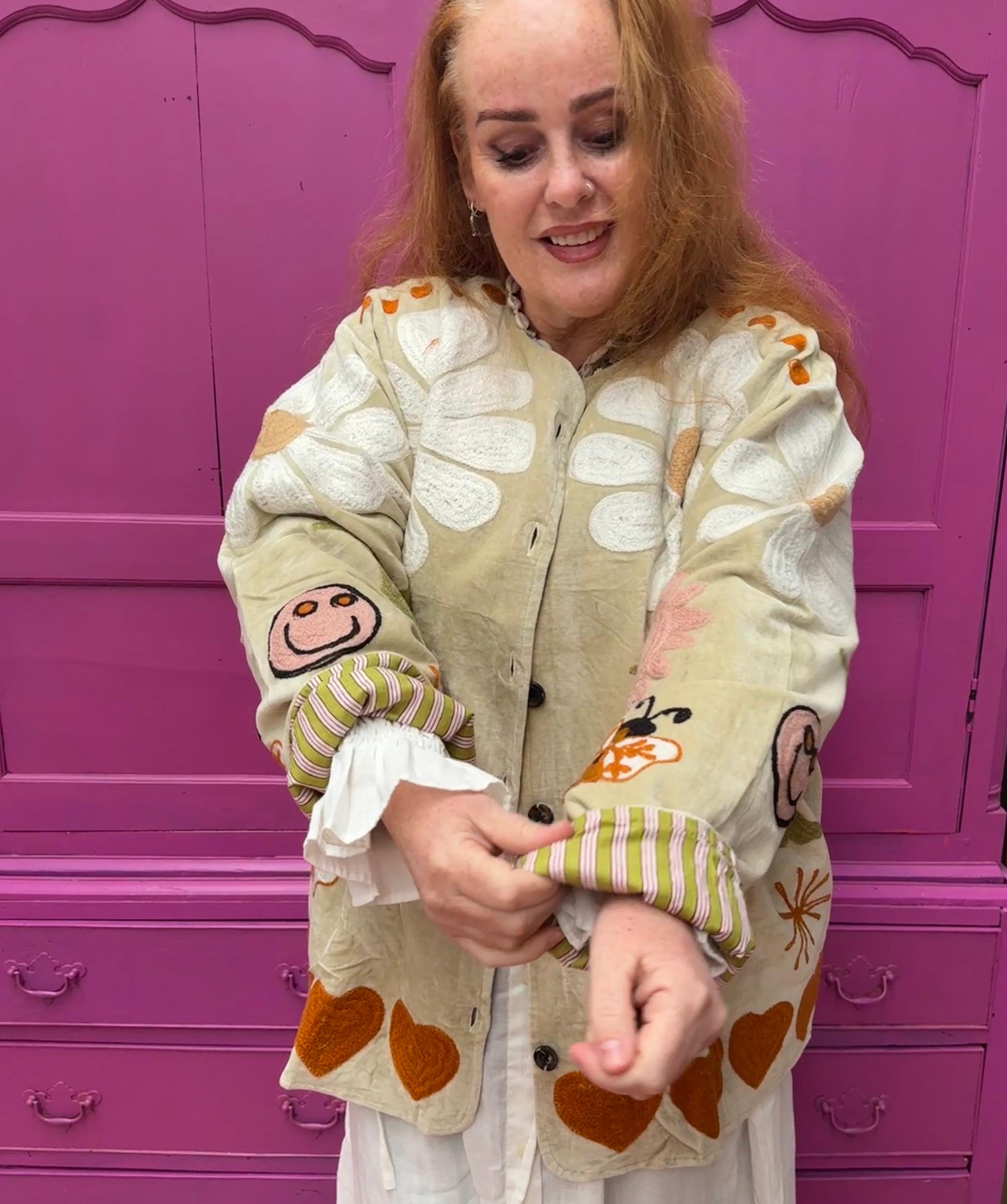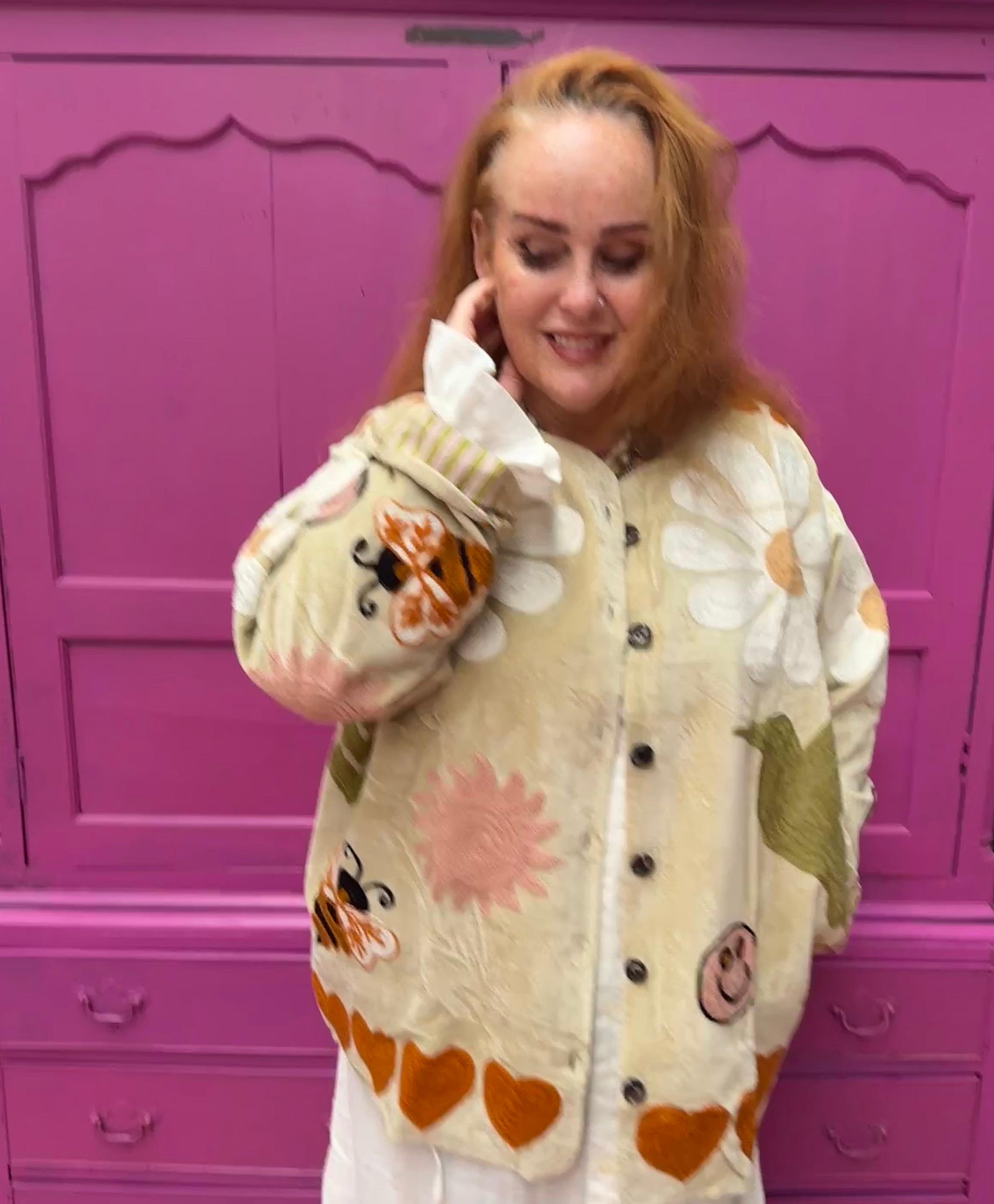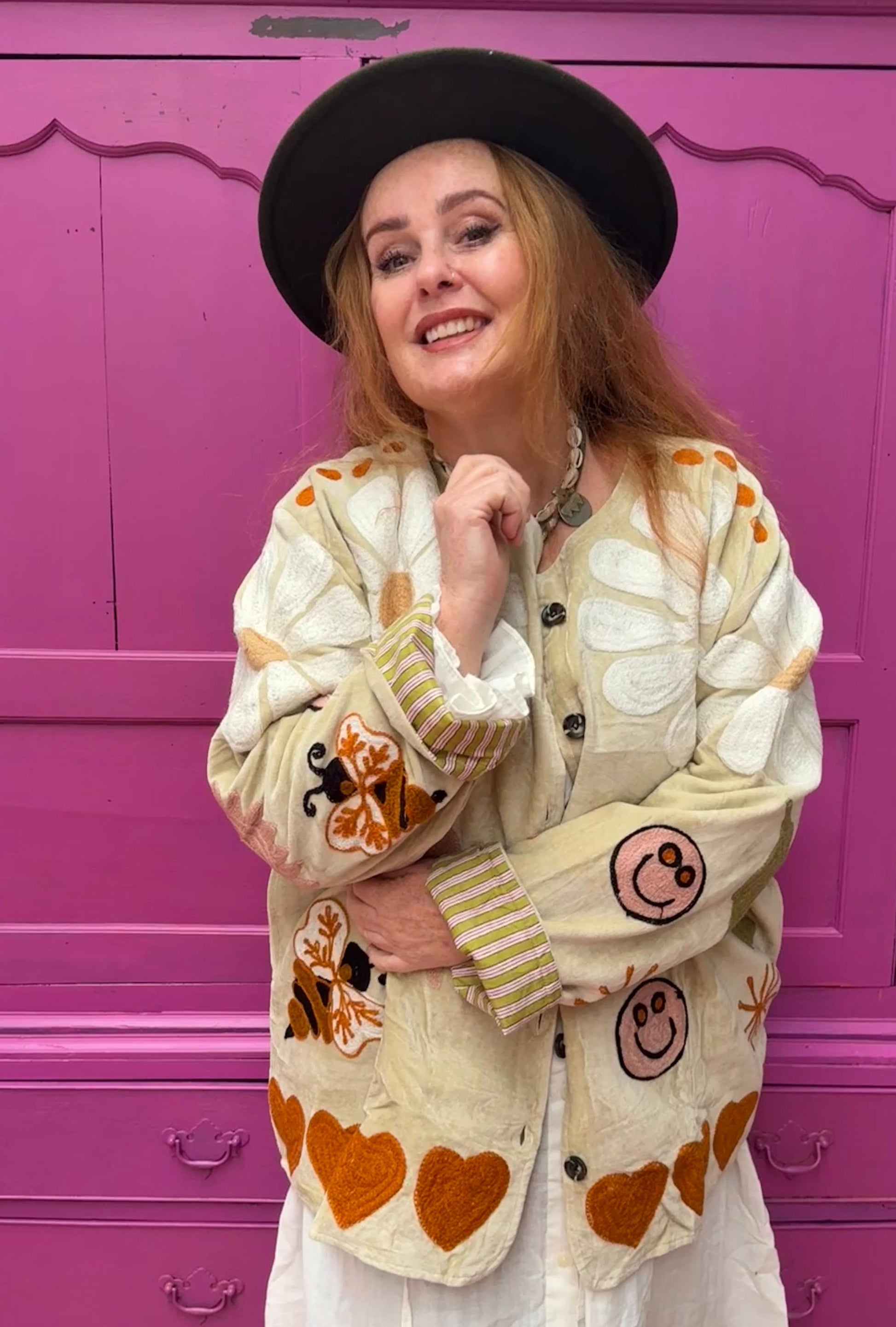 Dit jacket is gemaakt van velvet stof en geborduurd met de mooiste garen. Alles is zorgvuldig geselecteerd met respect voor mens en planeet.