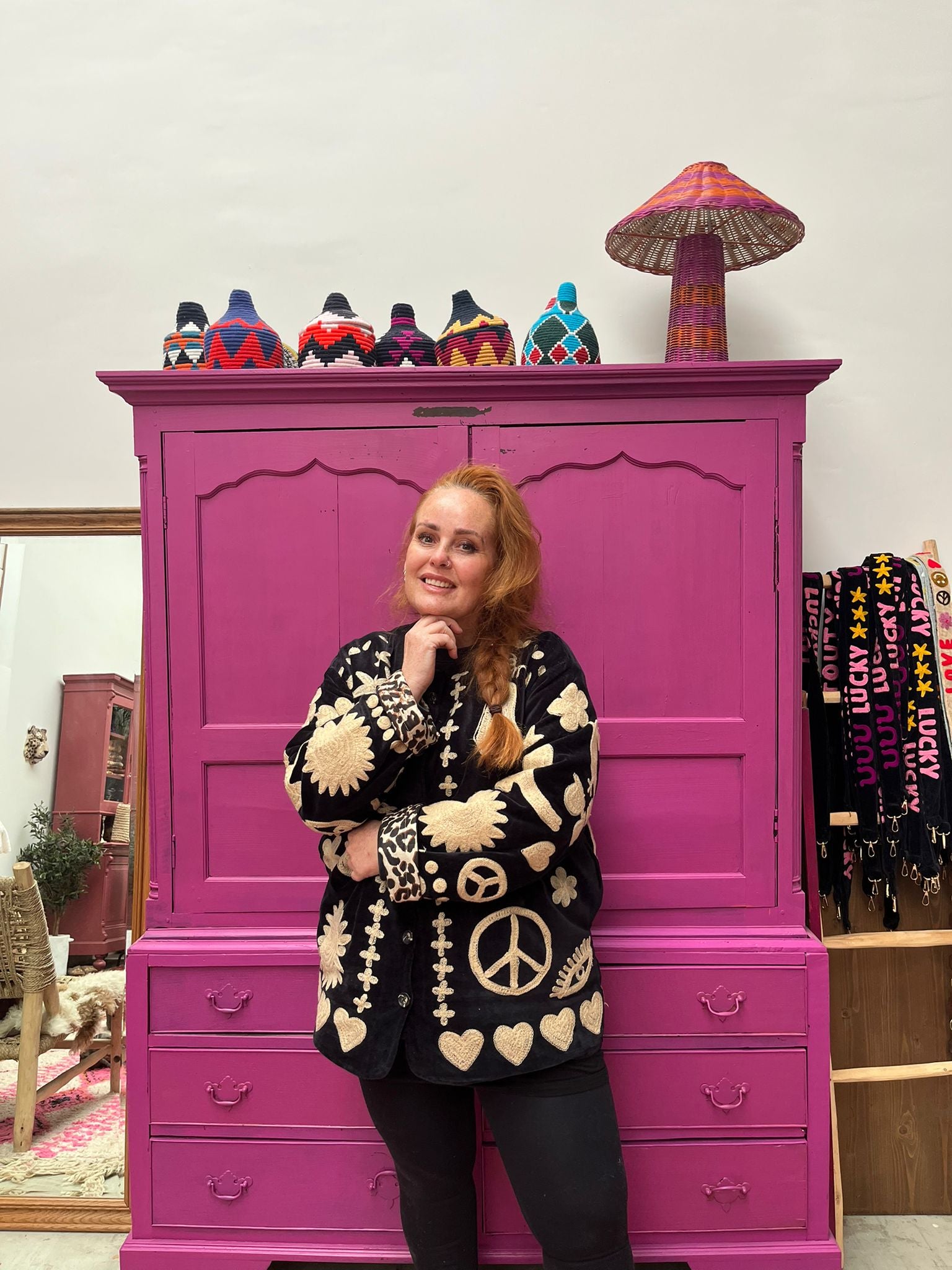 Dit jacket is gemaakt van velvet stof en geborduurd met de mooiste garen. Alles is zorgvuldig geselecteerd met respect voor mens en planeet.