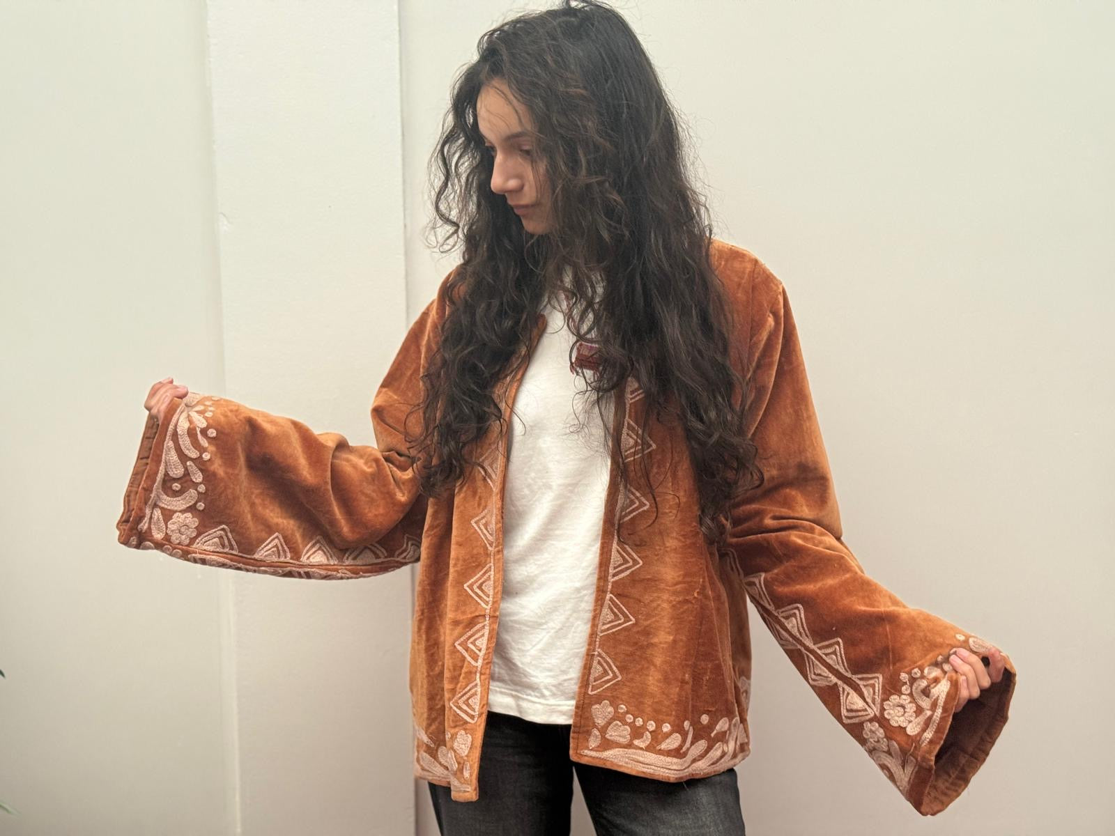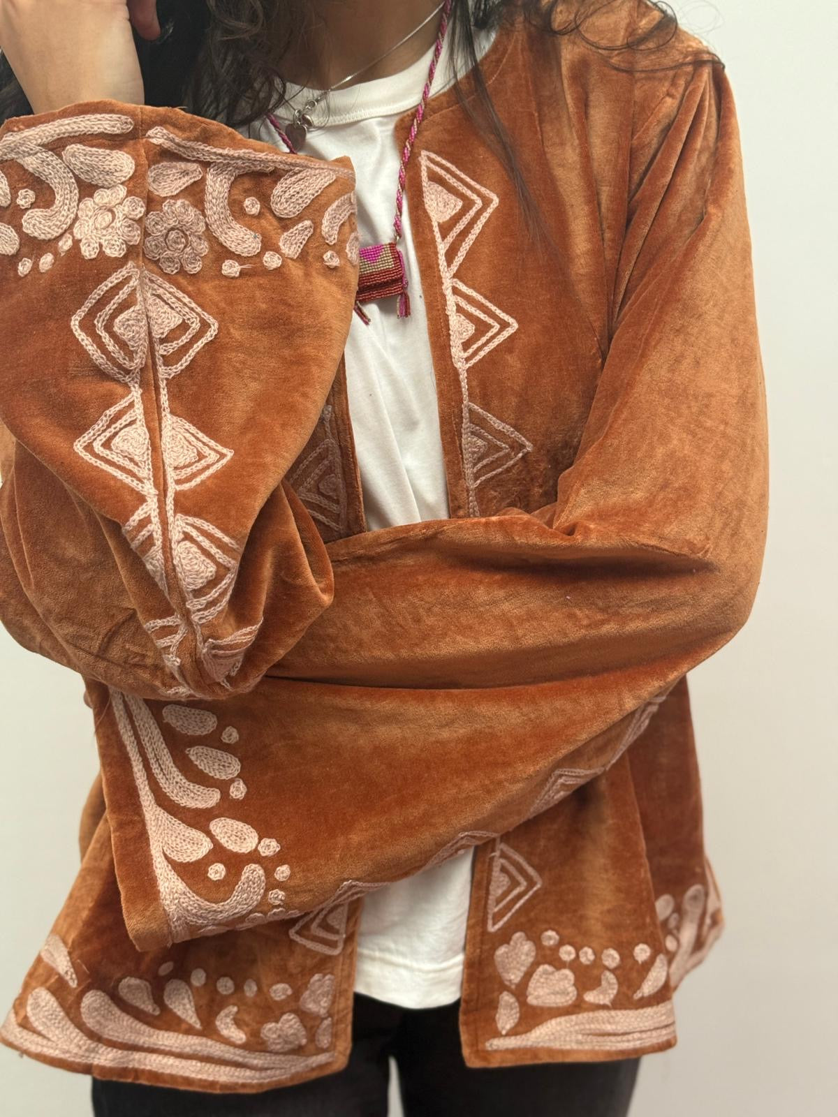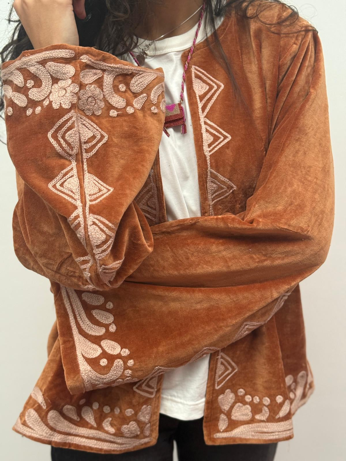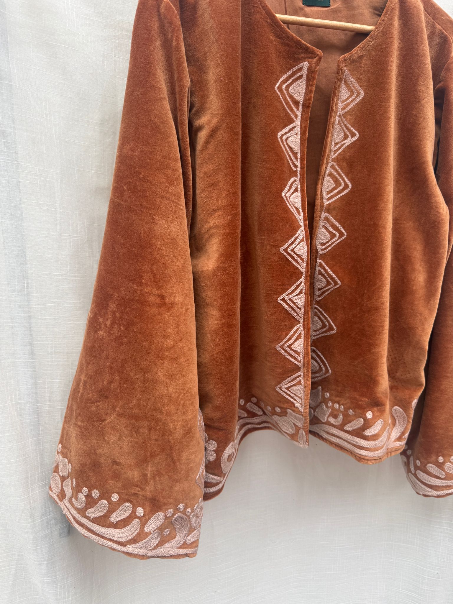 Dit jacket is gemaakt van velvet stof en geborduurd met de mooiste garen. Alles is zorgvuldig geselecteerd met respect voor mens en planeet.