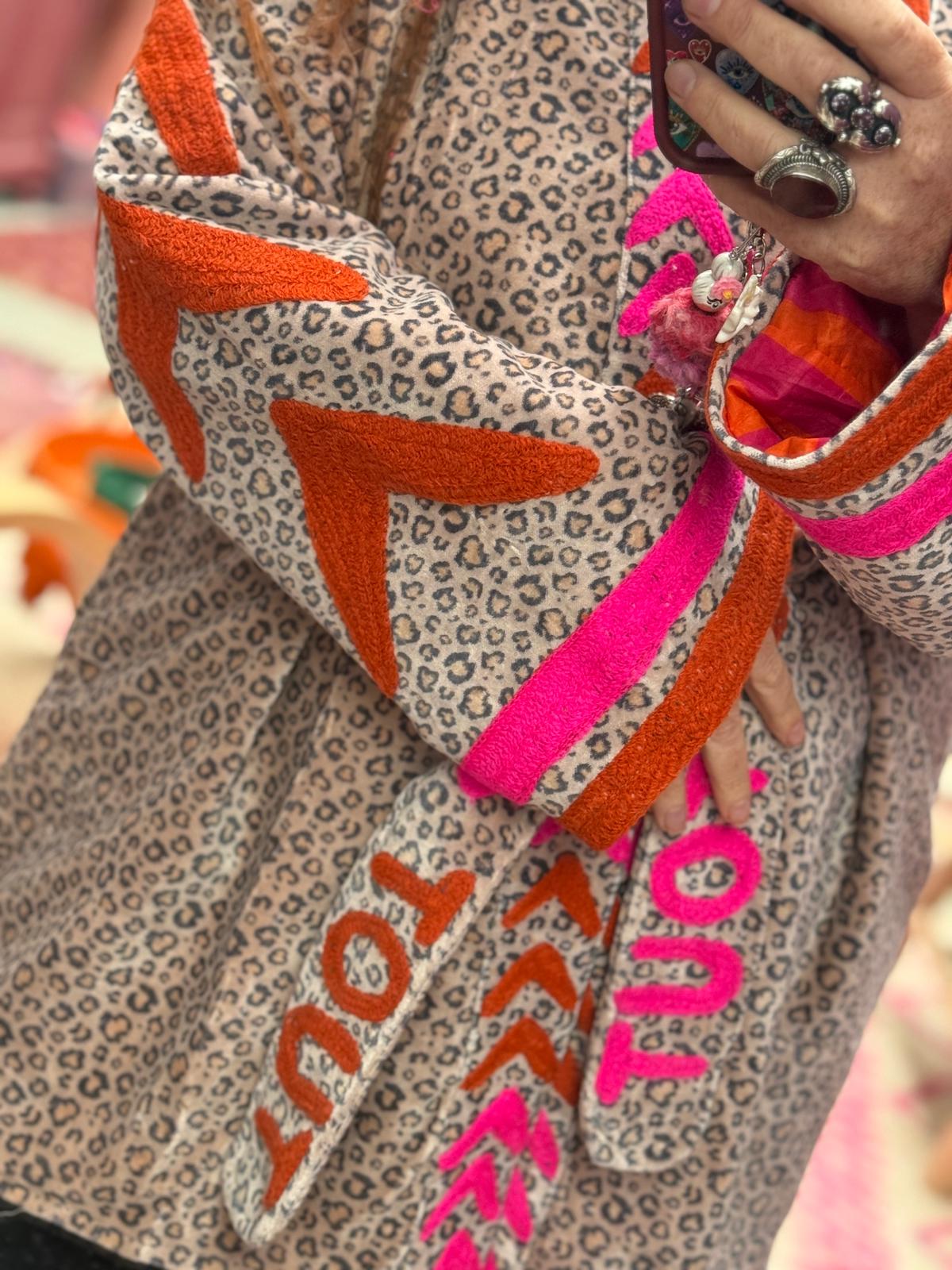 Dit jacket is gemaakt van velvet stof en geborduurd met de mooiste garen. Alles is zorgvuldig geselecteerd met respect voor mens en planeet.