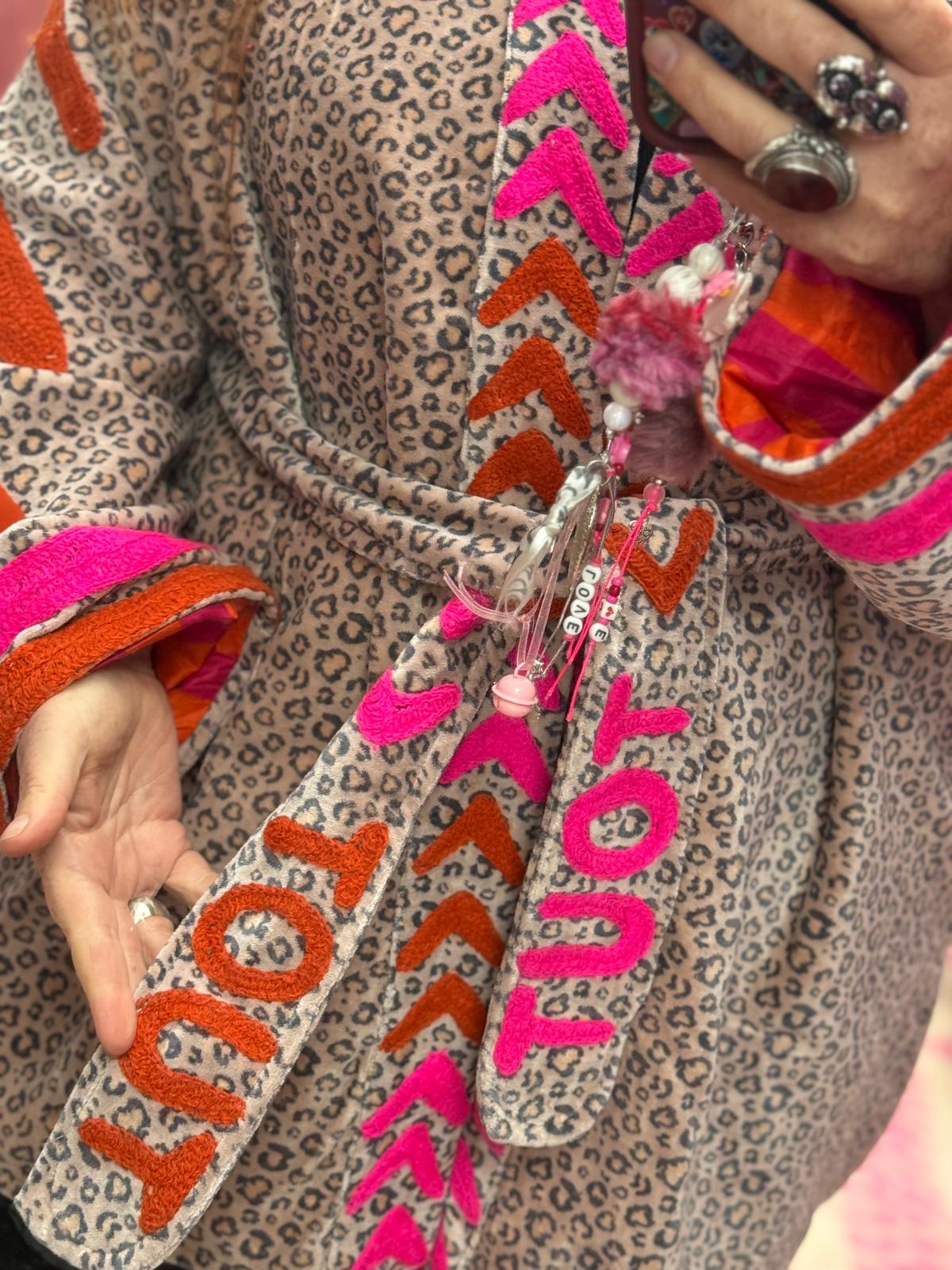 Velvet kimono Tout is met de hand gemaakt in India, speciaal ontworpen door ToutVintage en geschikt voor wie waarde hecht aan vakmanschap, duurzaamheid en karakter. Elk stuk is uniek en komt uit een gelimiteerde oplage van slechts 100 exemplaren.